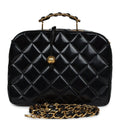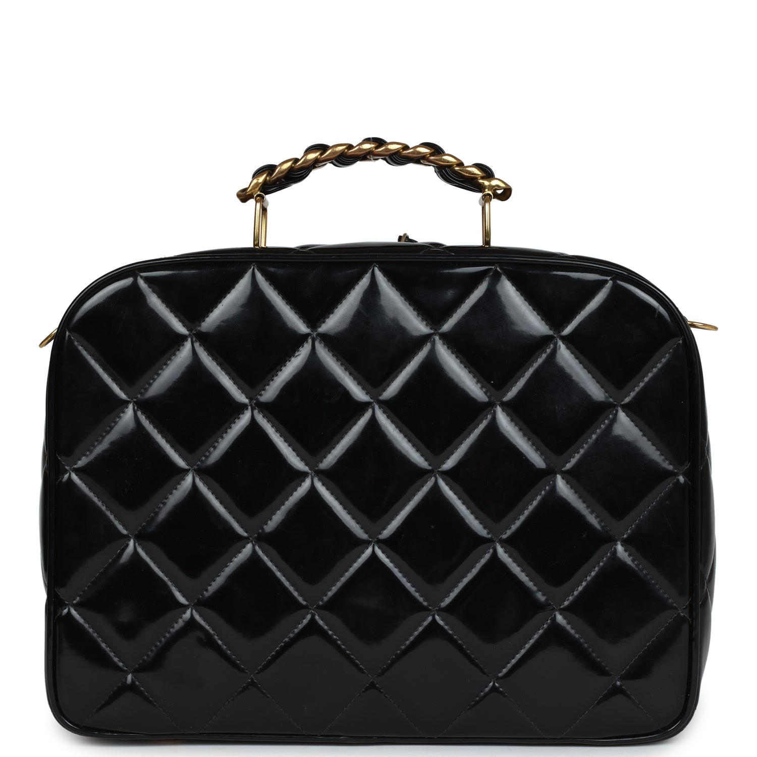 Vintage Chanel Lunchbox Vanity Black Patent Leather Gold Hardware