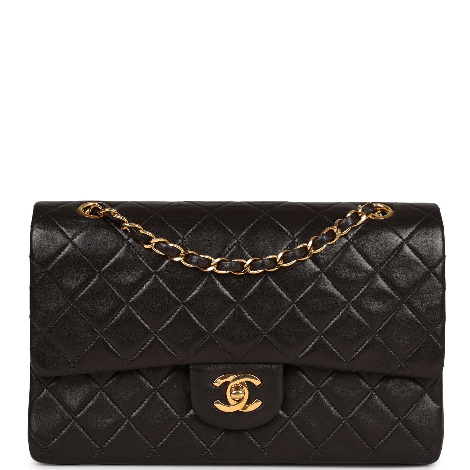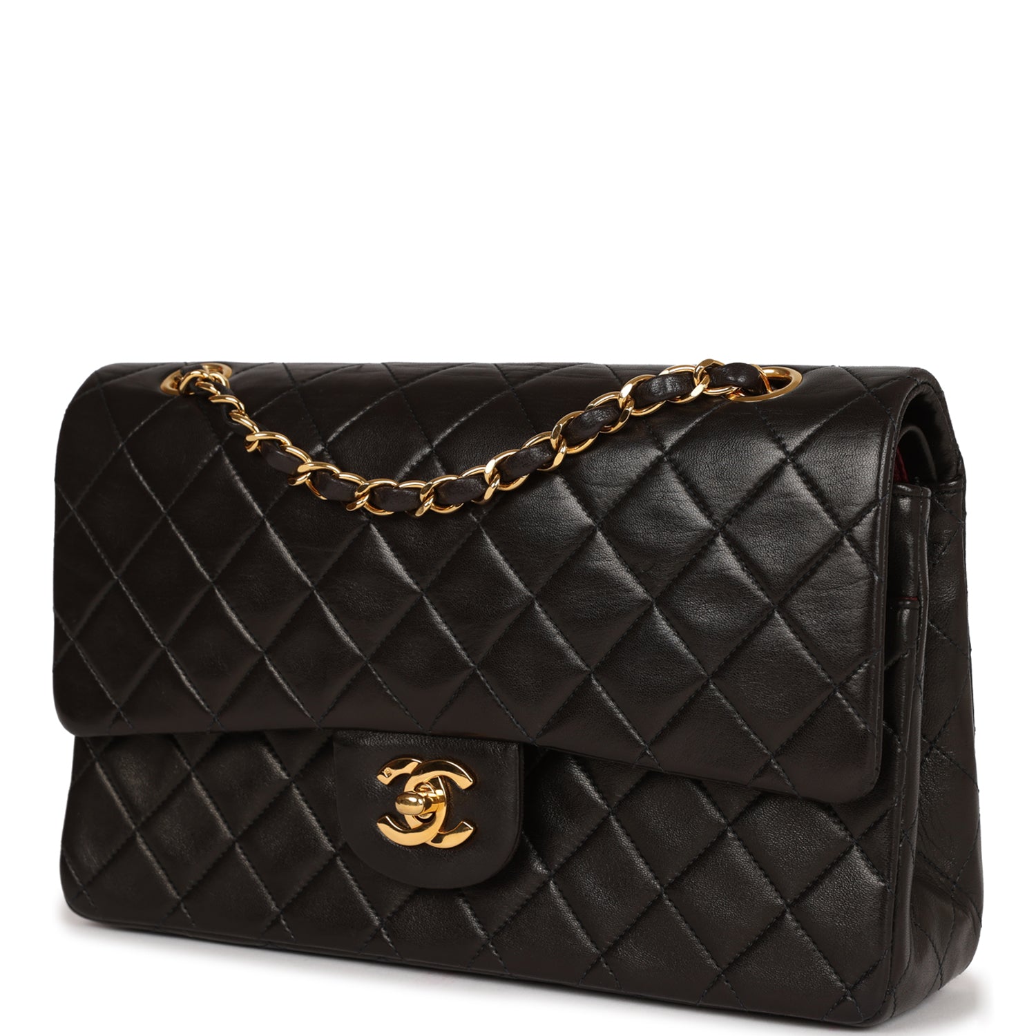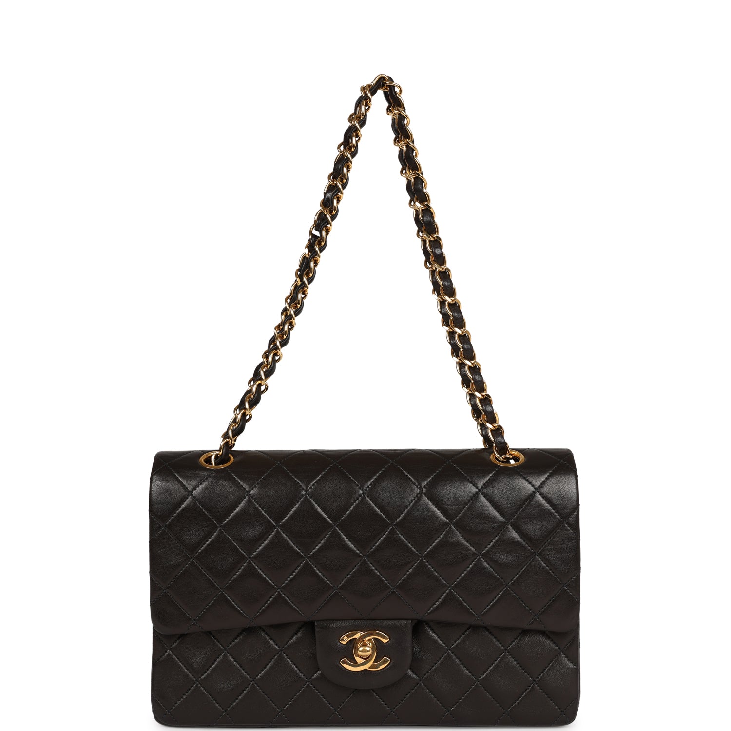 Vintage Chanel Medium Classic Double Flap Black Lambskin Gold Hardware