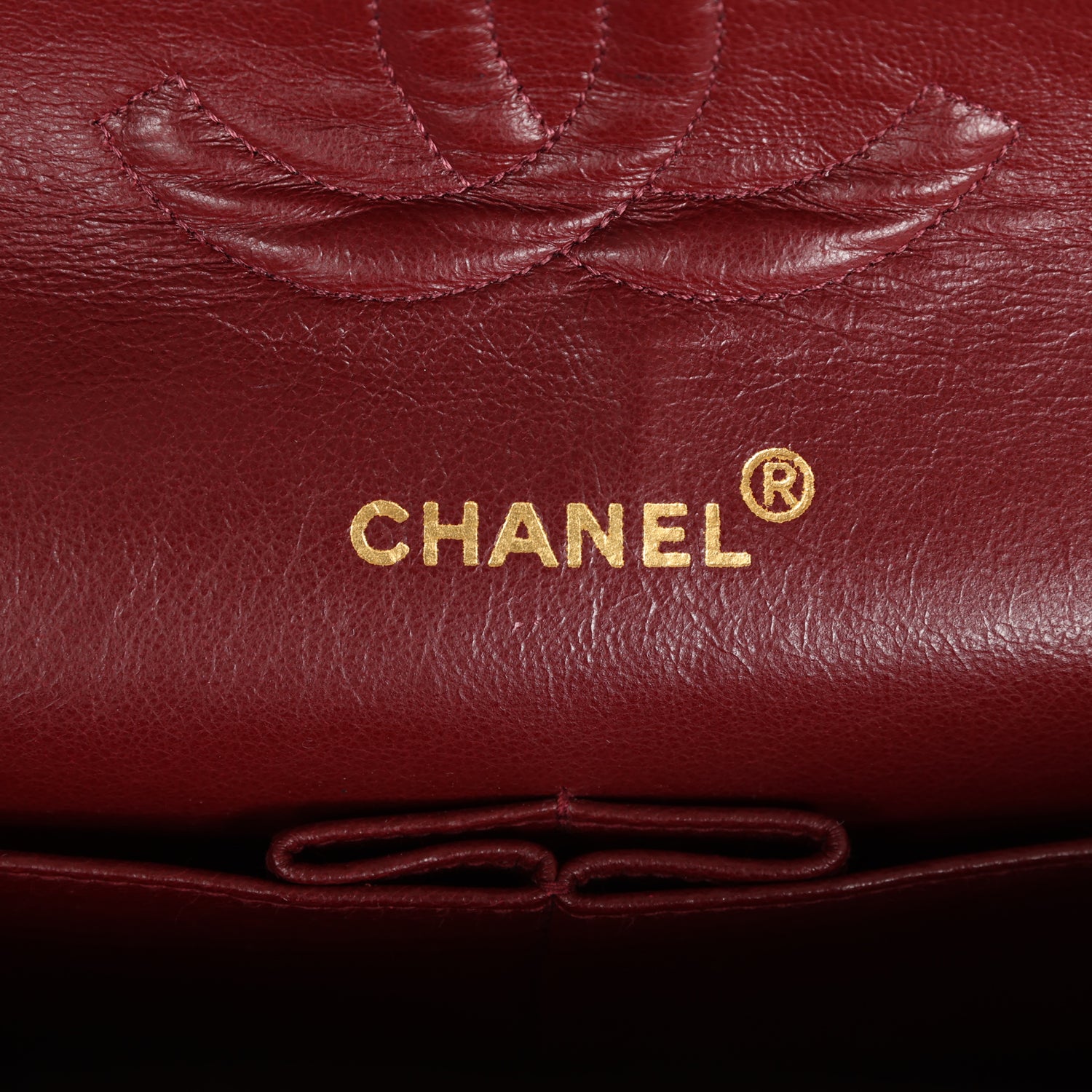 The interior is lined in black leather with the "love letter" zipper compartment underneath the first flap, an "outer" slit pocket under the second flap, and an interior compartment with two open pockets separated by a "lipstick" compartment.