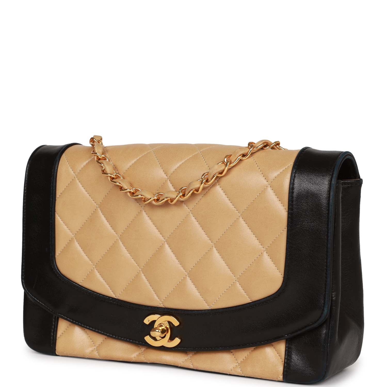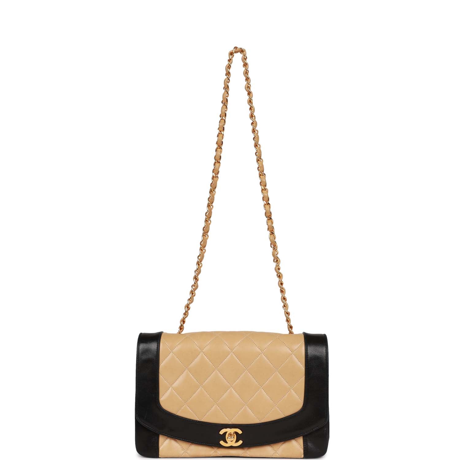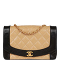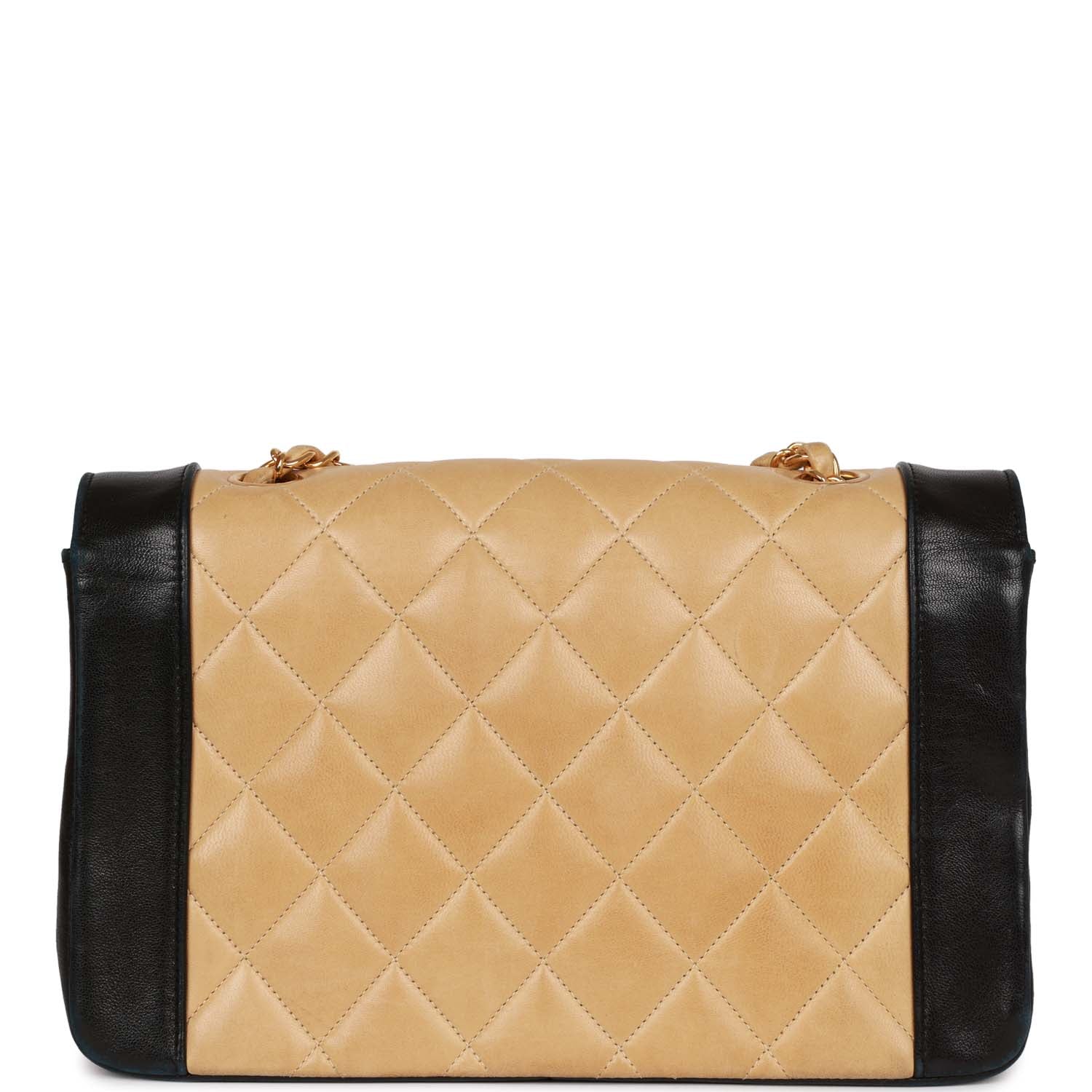 Vintage Chanel Medium Diana Flap Bag Black and Beige Lambskin Gold Hardware