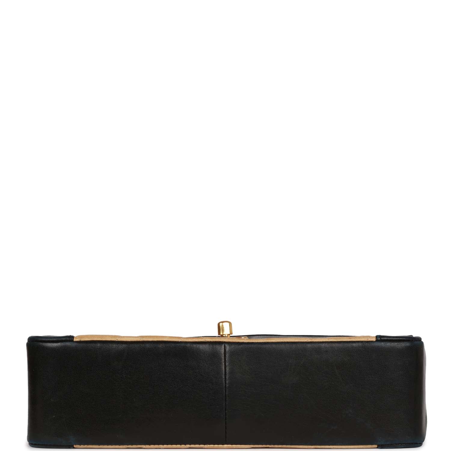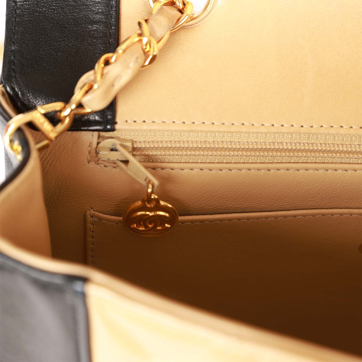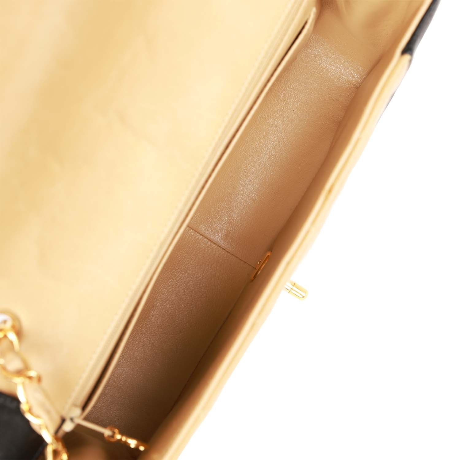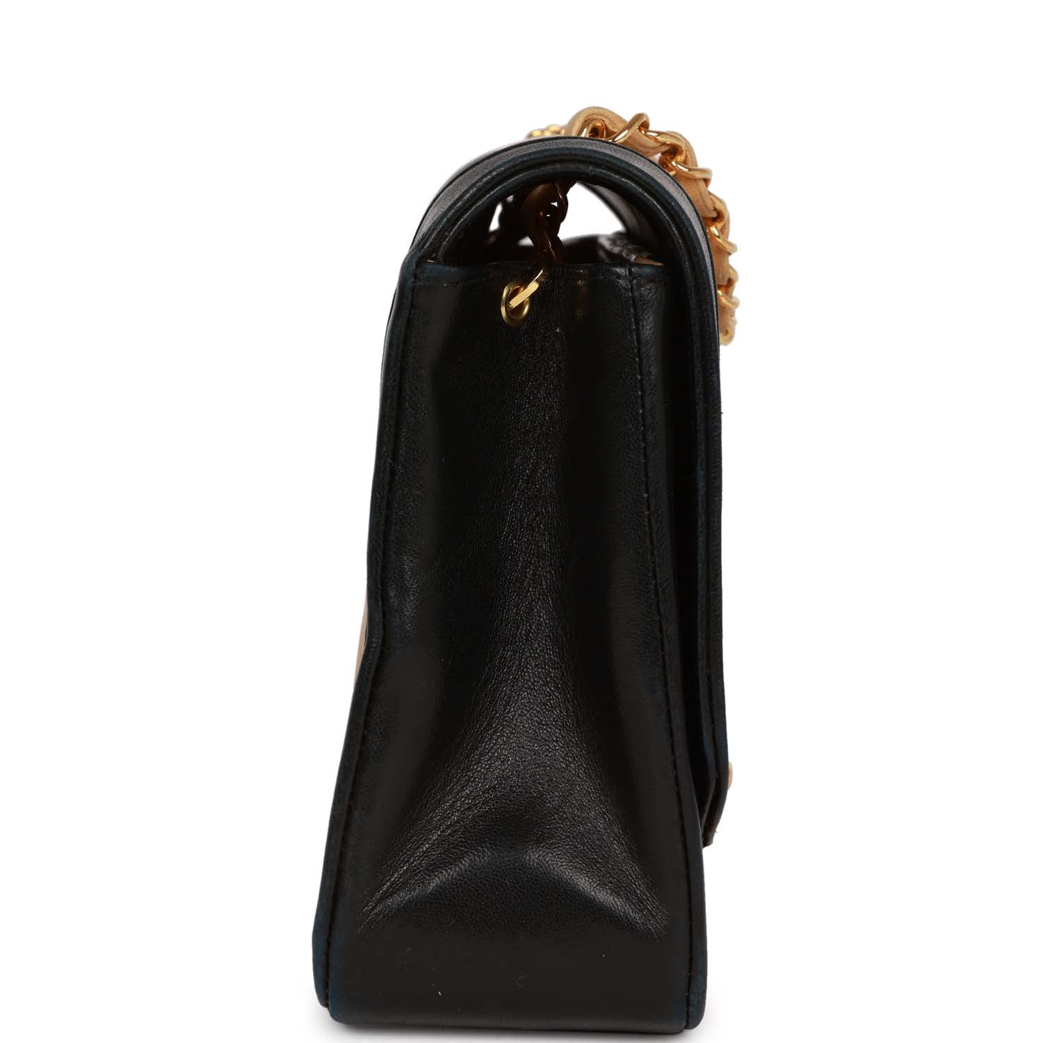 Vintage Chanel Medium Diana Flap Bag Black and Beige Lambskin Gold Hardware