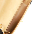 This Vintage Medium Diana flap bag is in Black and Beige lambskin leather with gold plated hardware, front flap with CC turnlock closure, and an interwoven gold plated chain link and white leather shoulder/crossbody strap