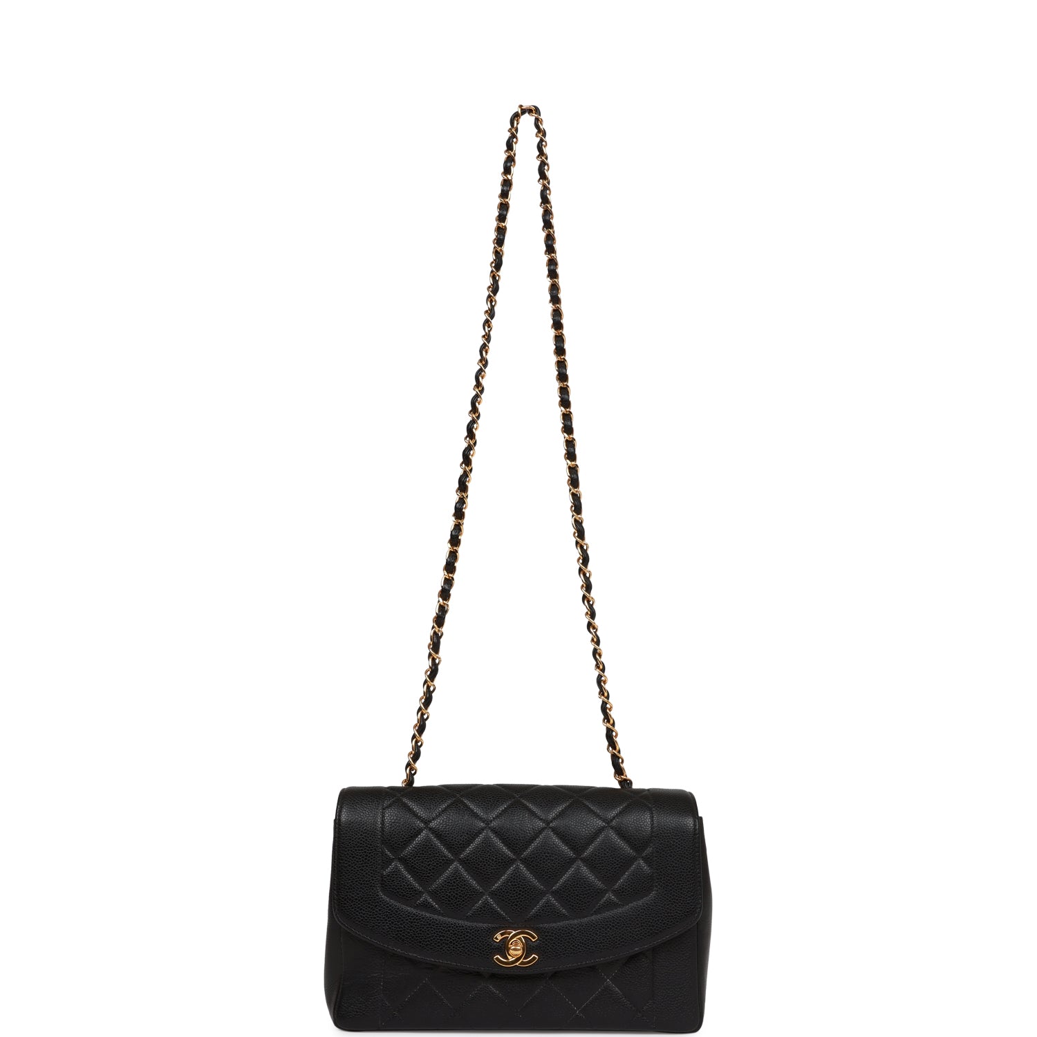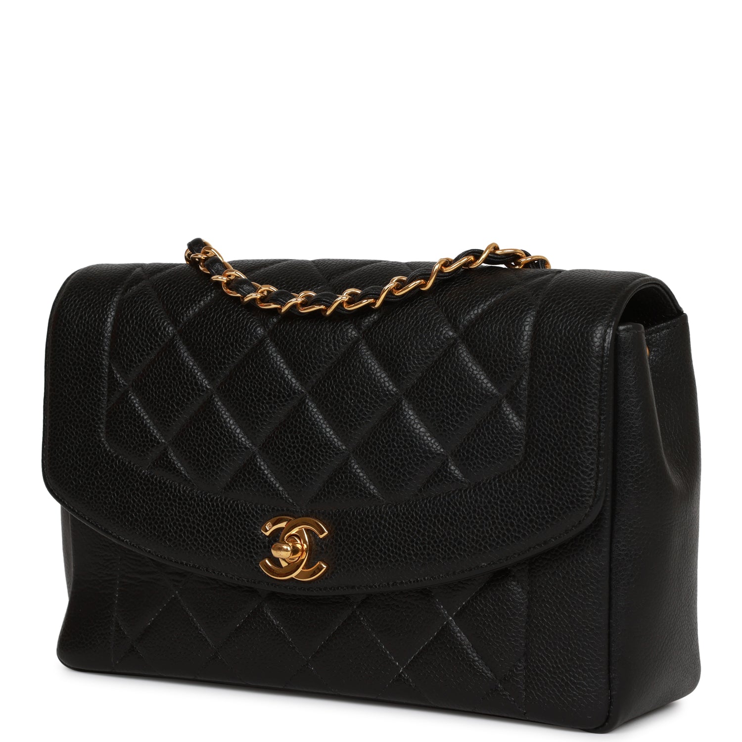 Vintage Chanel Medium Diana Flap Bag Black Caviar Gold Hardware