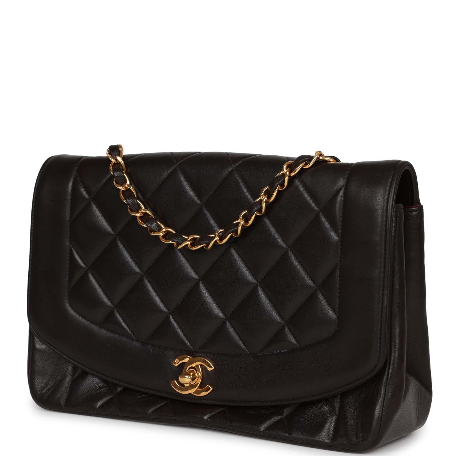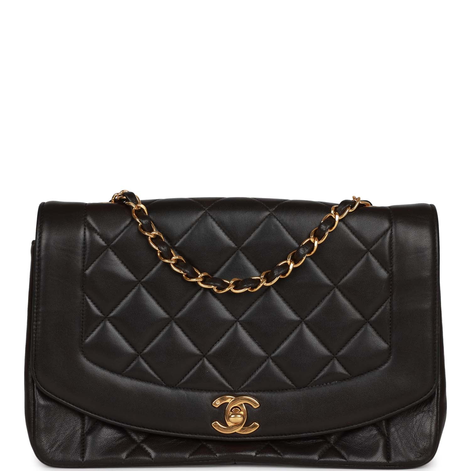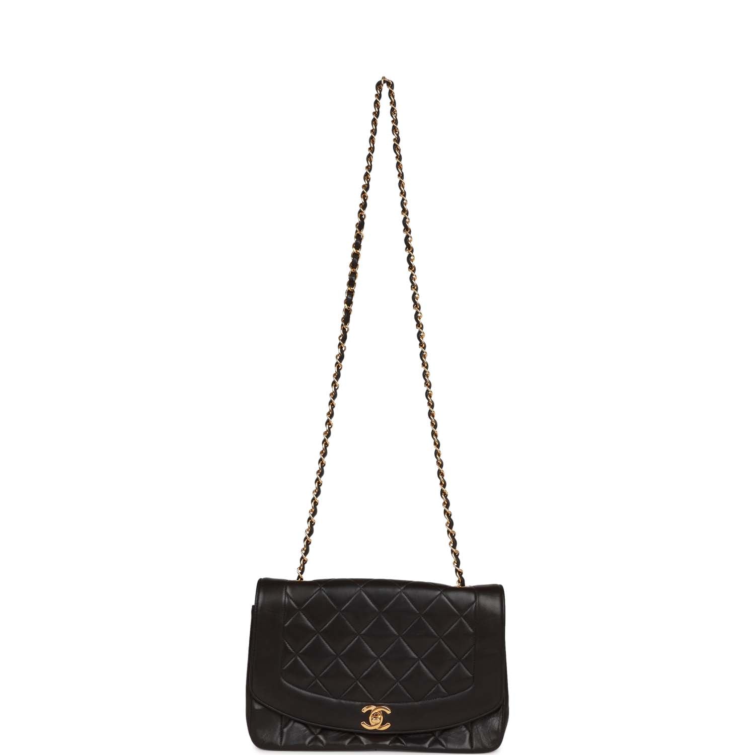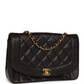 Vintage Chanel Medium Diana Flap Bag Black Lambskin Gold Hardware