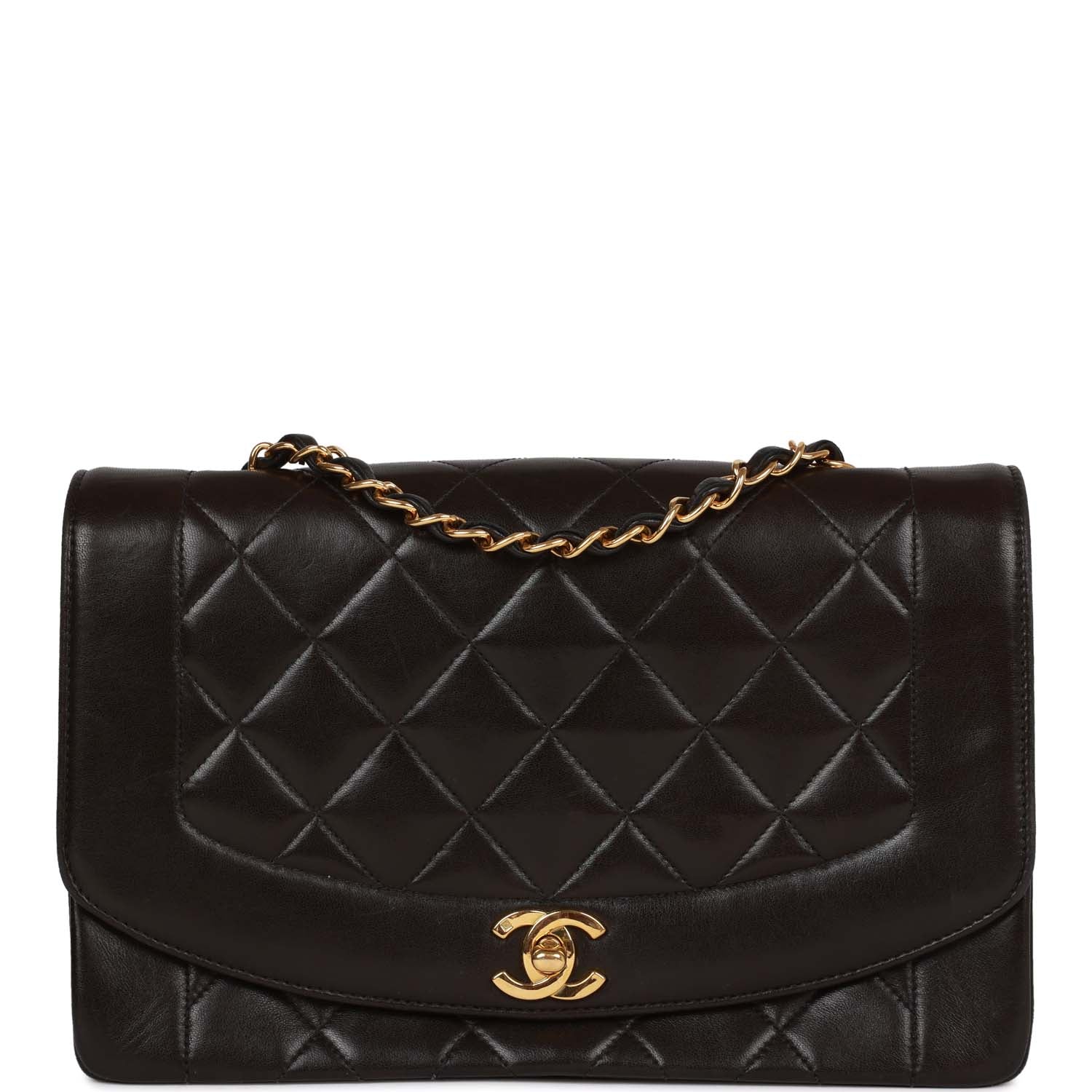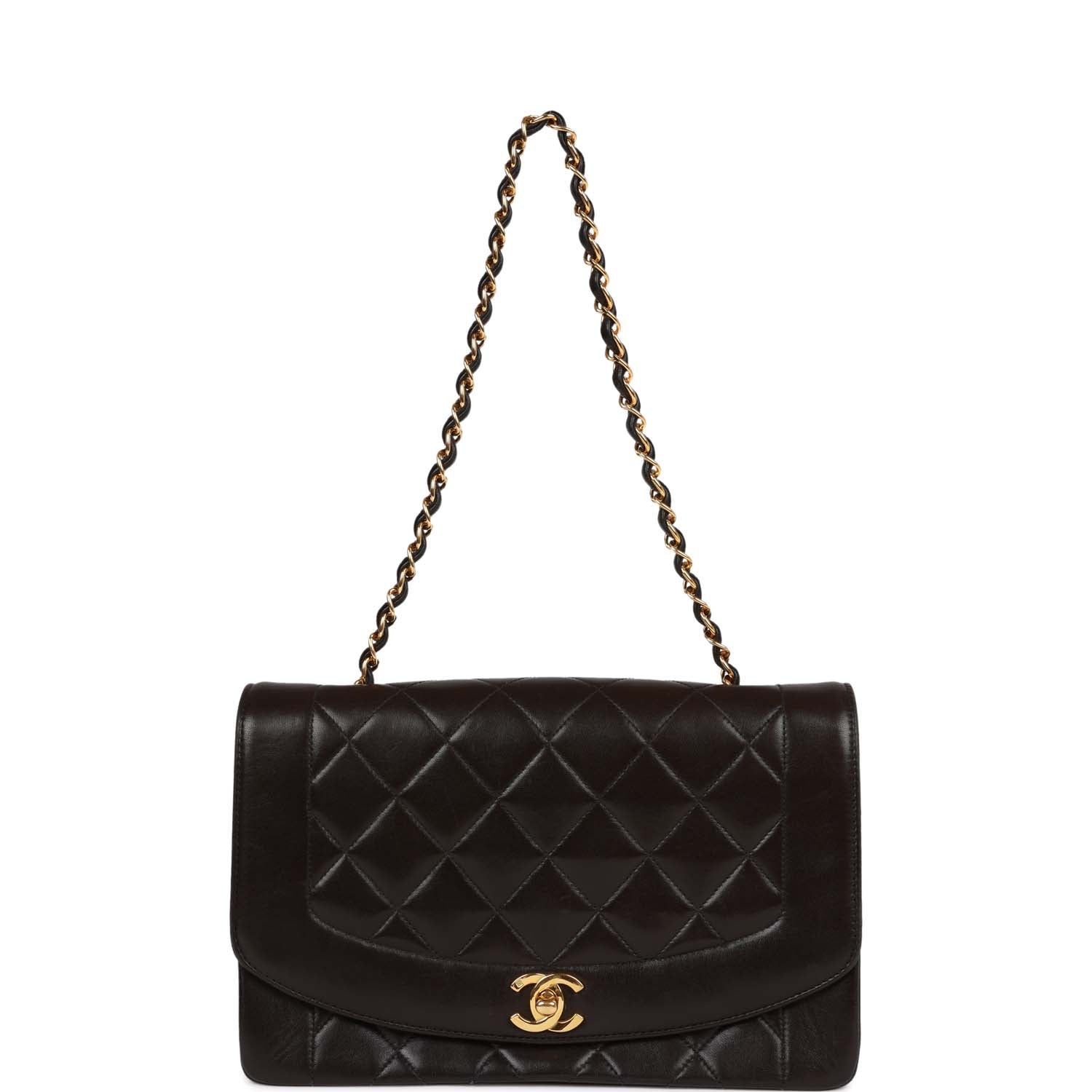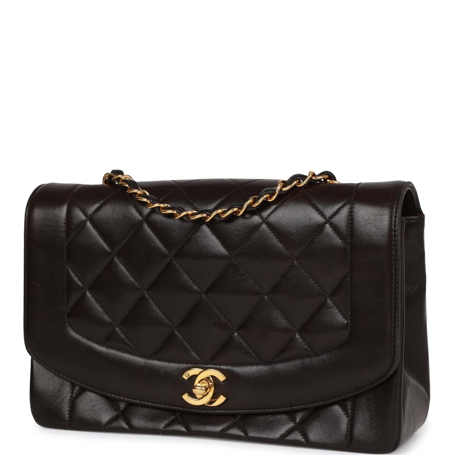 Vintage Chanel Medium Diana Flap Bag Black Quilted Lambskin Gold Hardware
