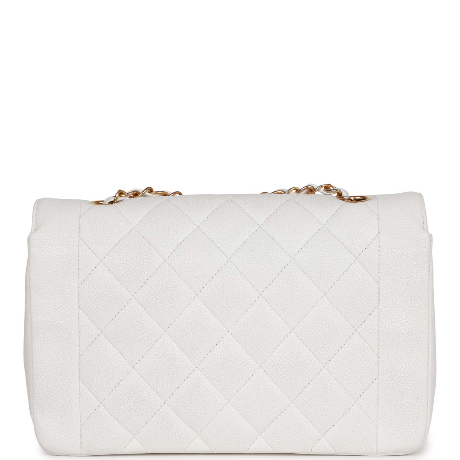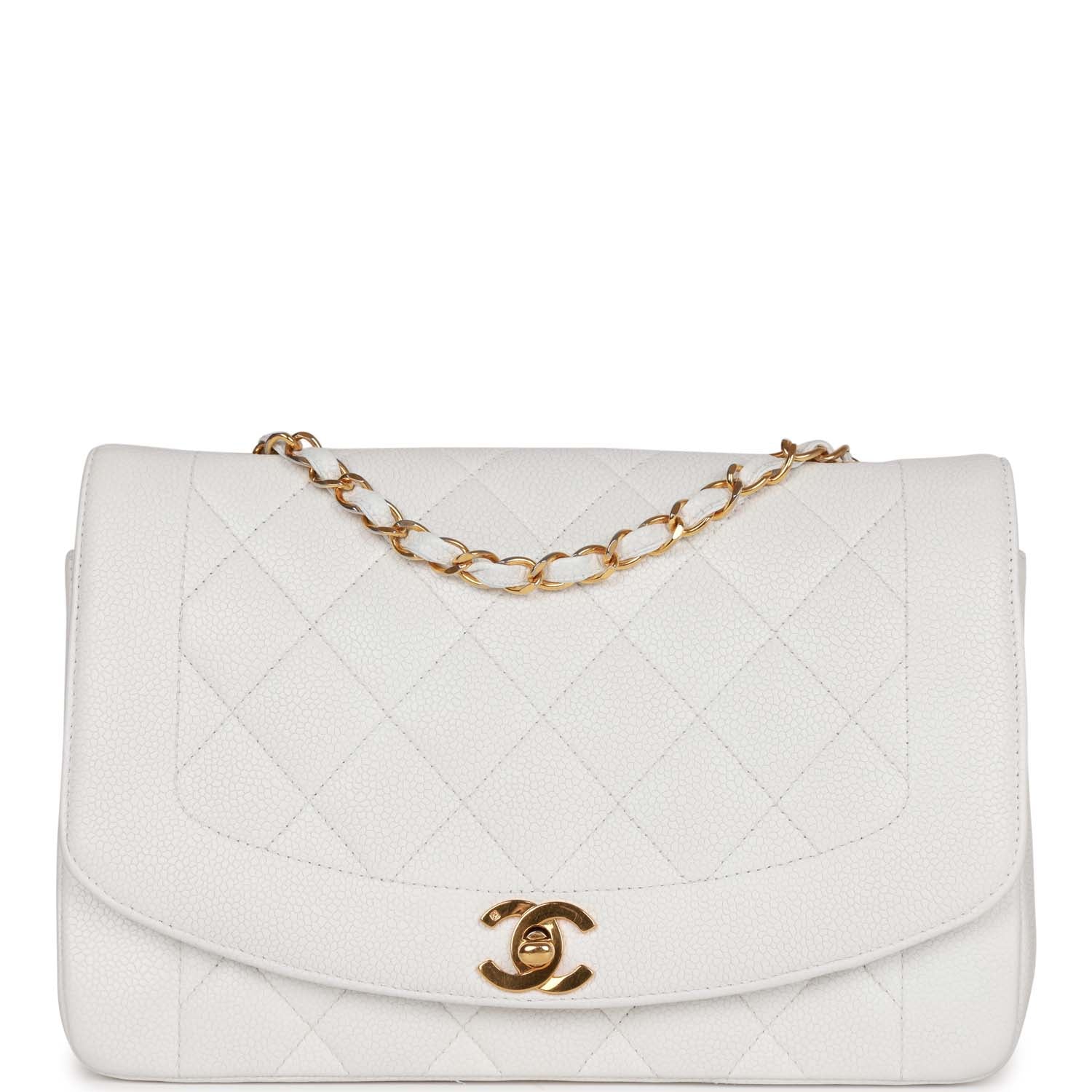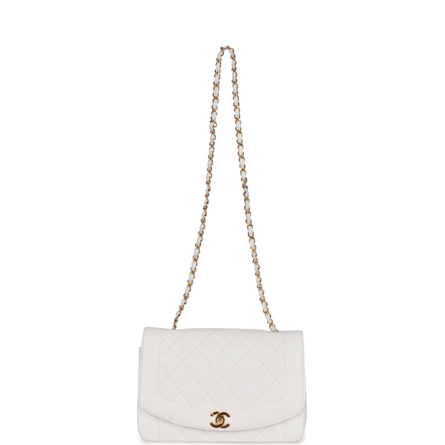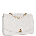 Vintage Chanel Medium Diana Flap Bag White Caviar Gold Hardware