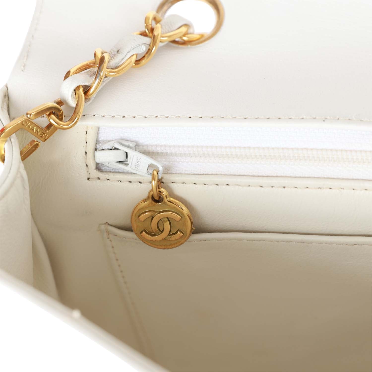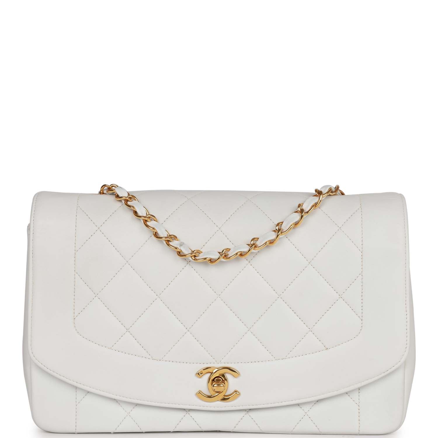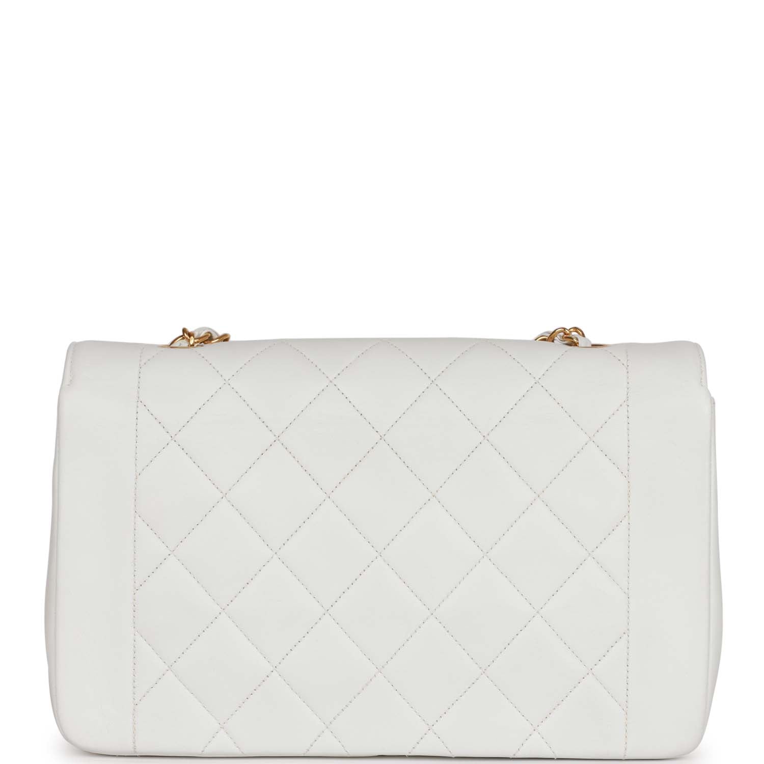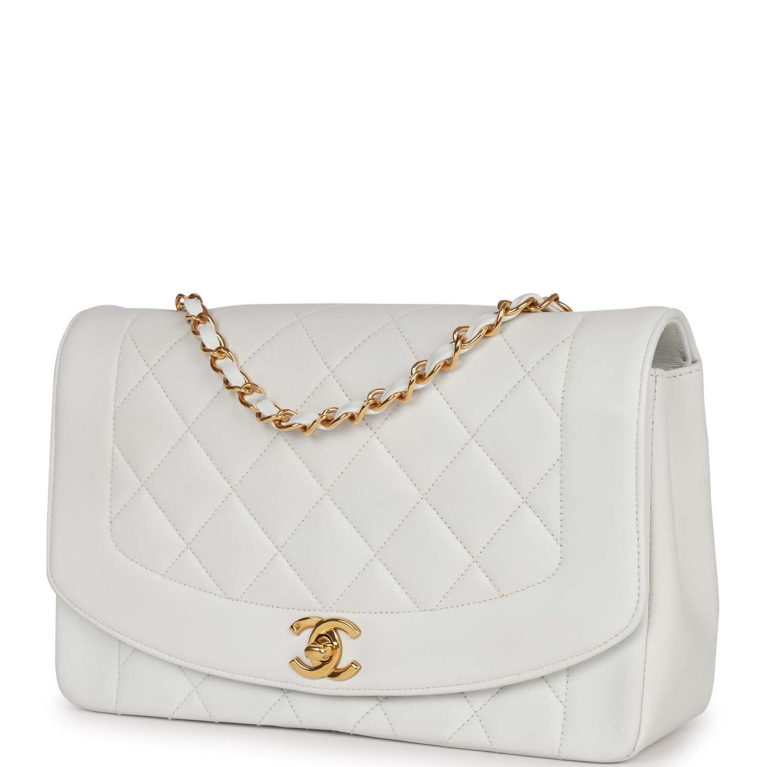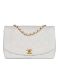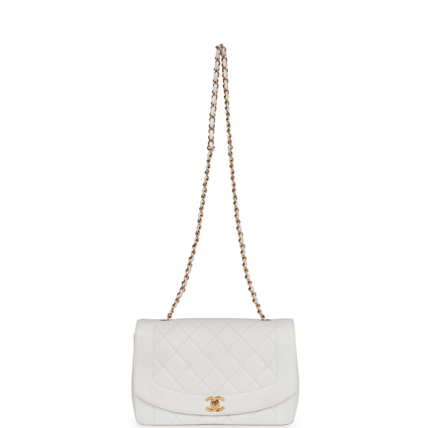 Vintage Chanel Medium Diana Flap Bag White Lambskin Gold Hardware