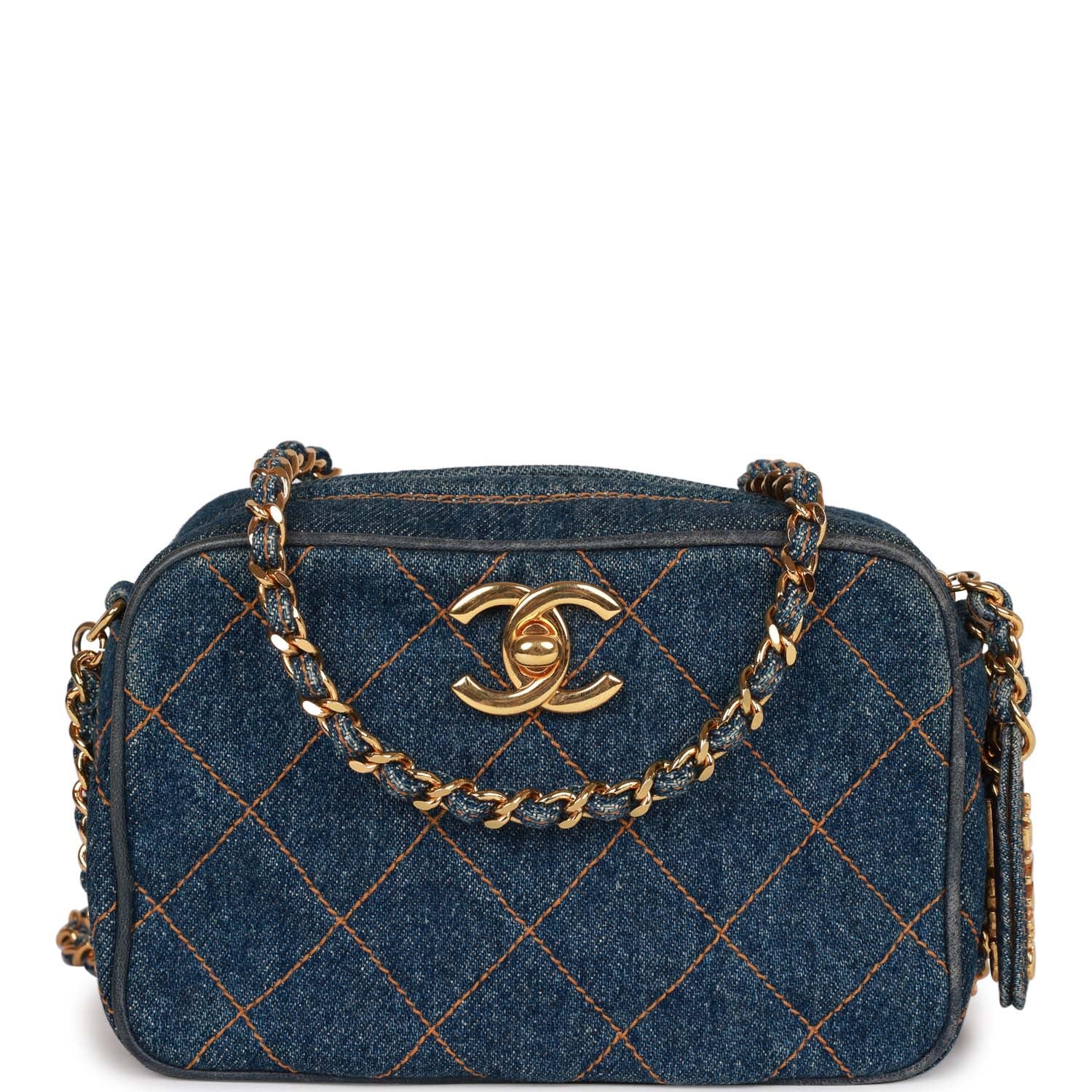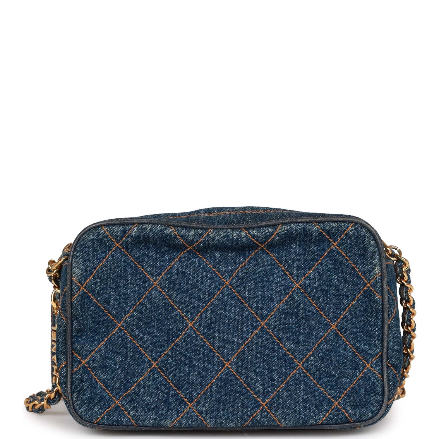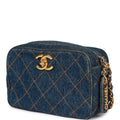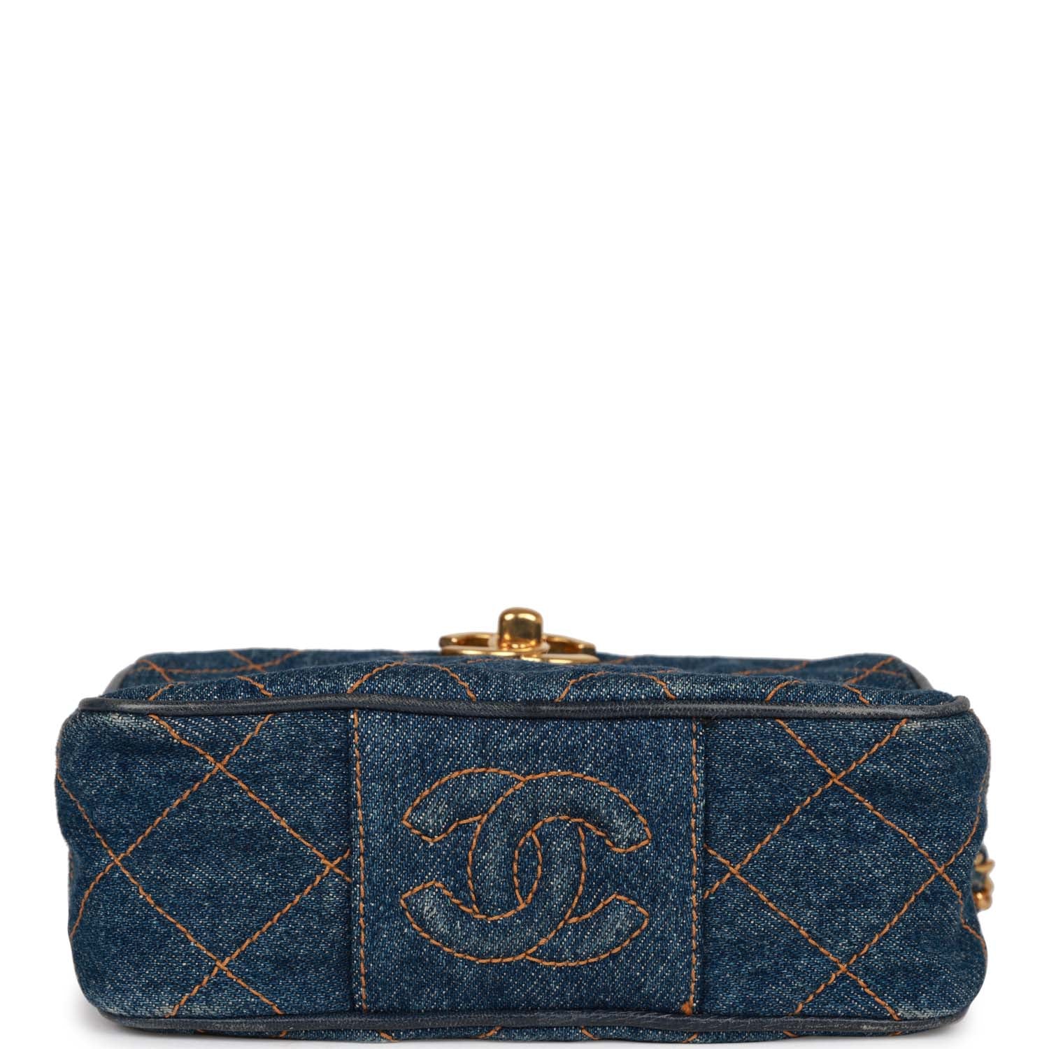Vintage Chanel Mini Camera Bag Blue Denim Gold Hardware