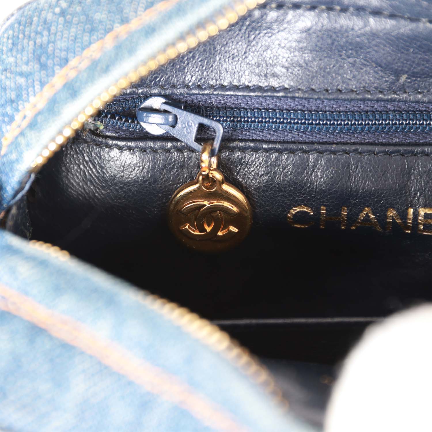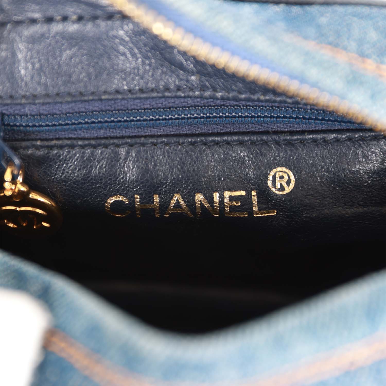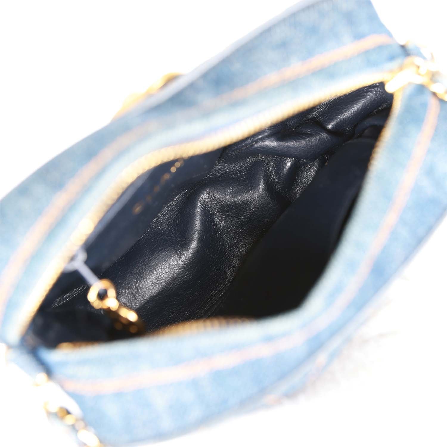 Vintage Chanel Mini Camera Bag Blue Denim Gold Hardware