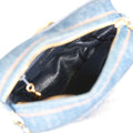 This Vintage Quilted Mini Bag is in Blue denim with gold hardware, front signature CC turnlock logo with top zip closure and logo pull, contrast stitching, and interwoven gold plated chain link and denim shoulder/crossbody strap.