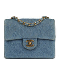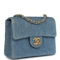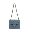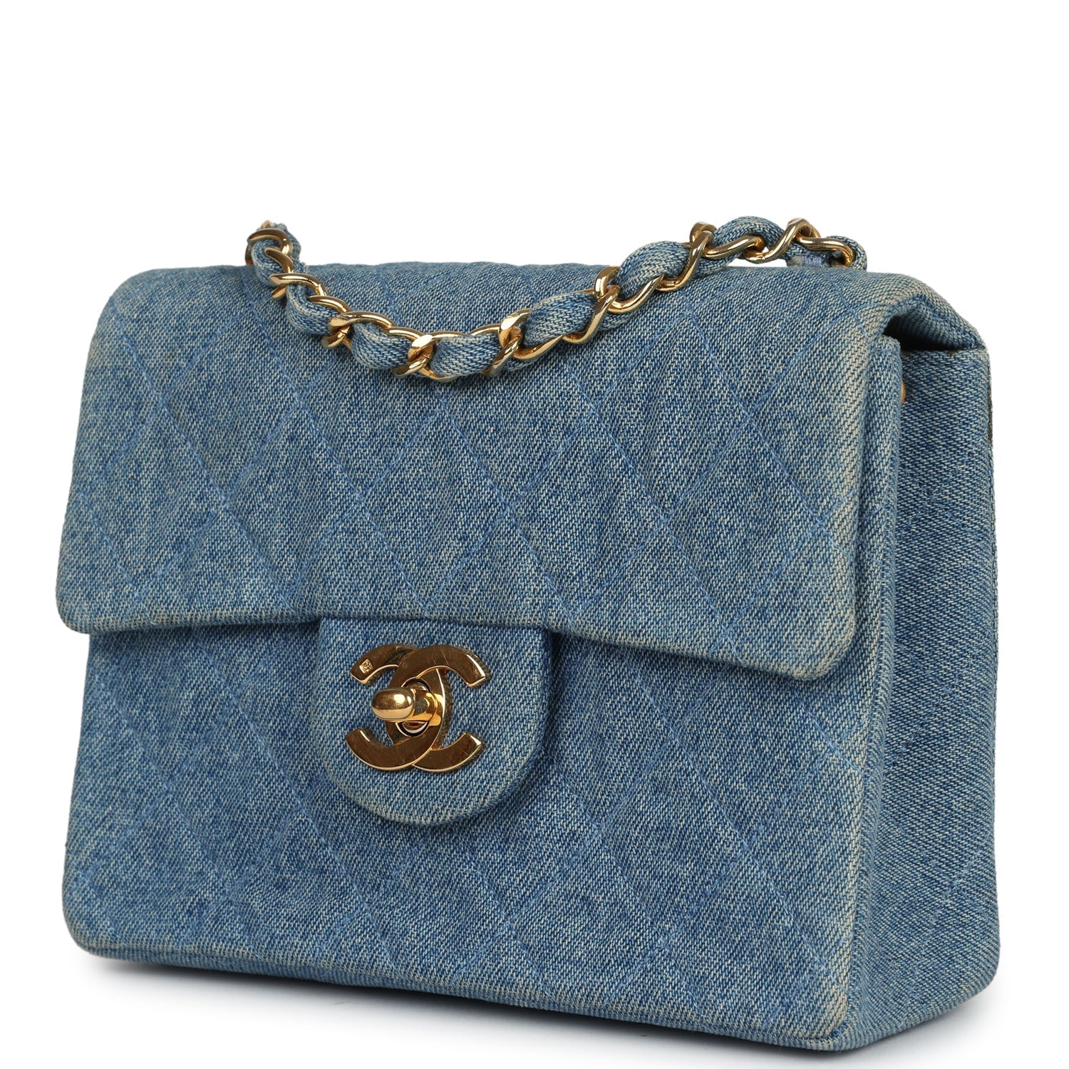 Vintage Chanel Mini Square Flap Bag Blue Denim Gold Hardware