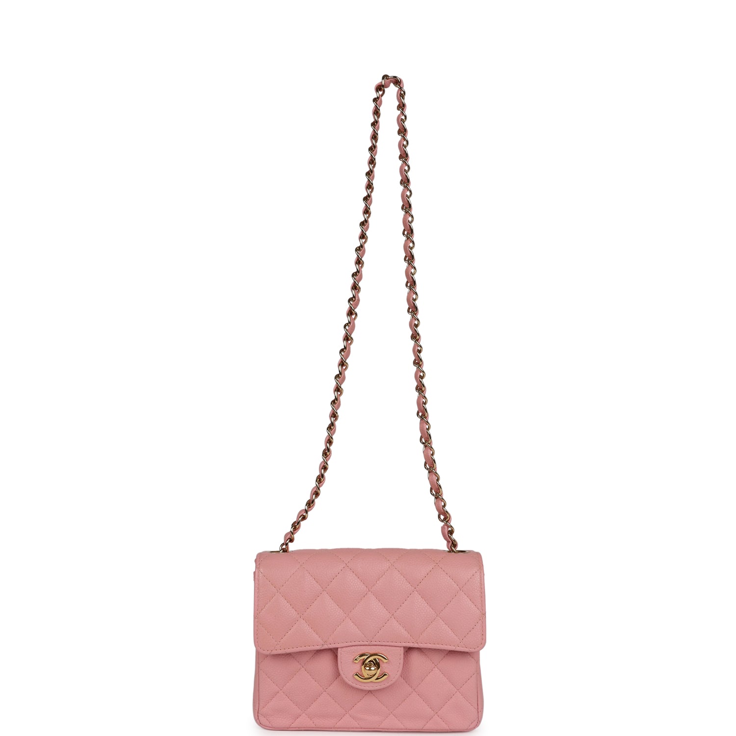 Vintage Chanel Mini Square Flap Pink Caviar Gold Hardware