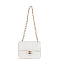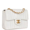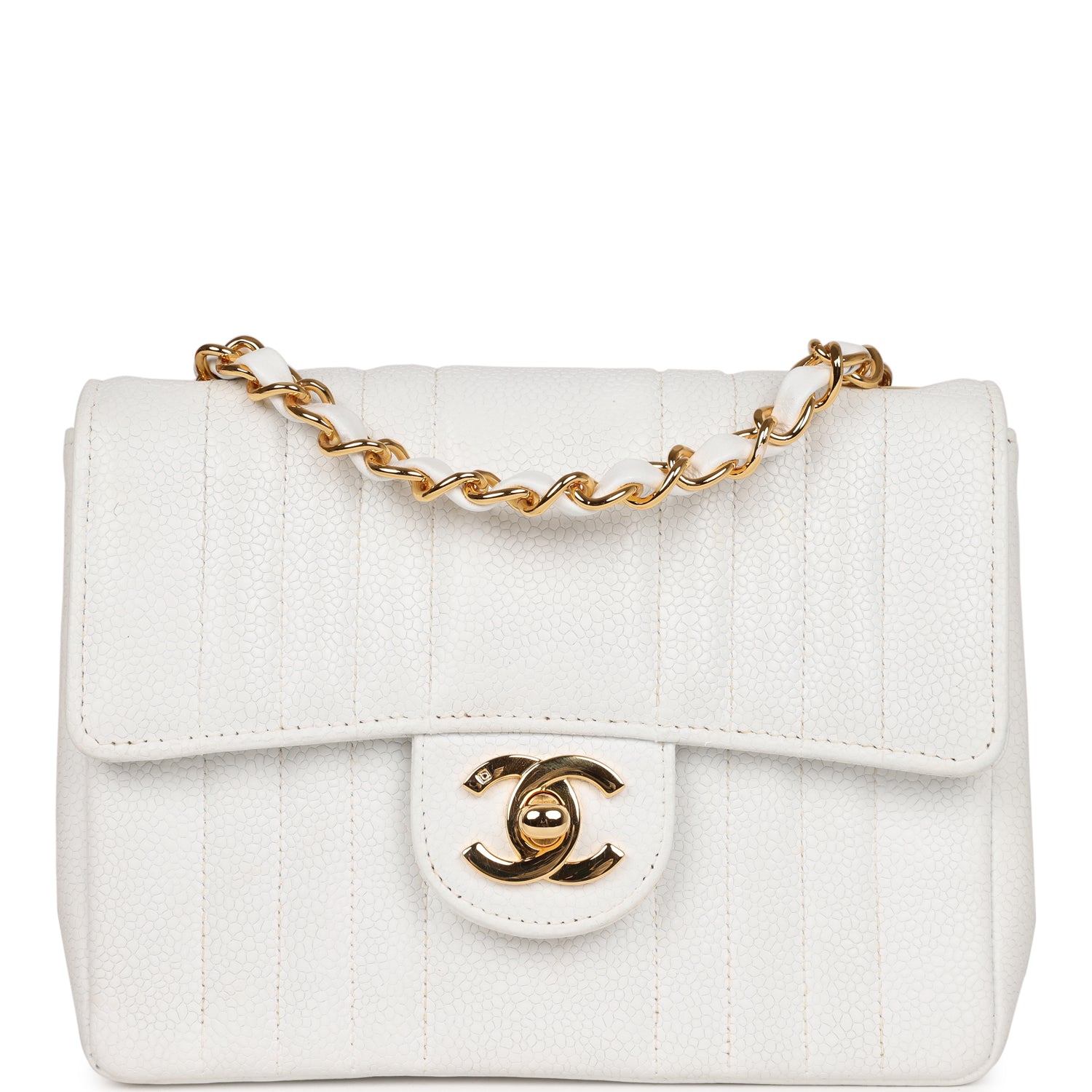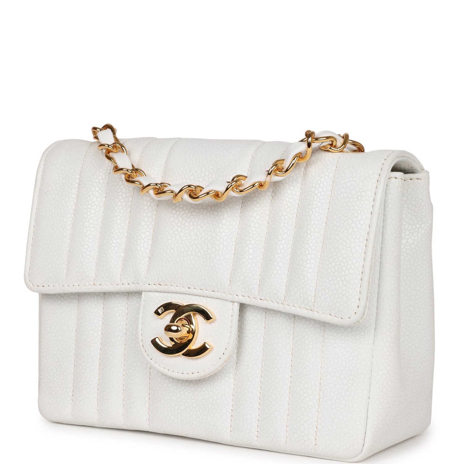 Vintage Chanel Mini Square Flap Vertical Stripe White Caviar Gold Hardware