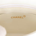 The interior is lined in white leather and features a zipper pocket with Chanel pull and an open pocket below.