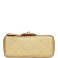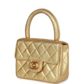 This Vintage Mini Kelly Flap Bag is in Gold Metallic lambskin leather with gold hardware, a front flap with signature CC turnlock, a rear half moon pocket, and a gold metallic top handle.