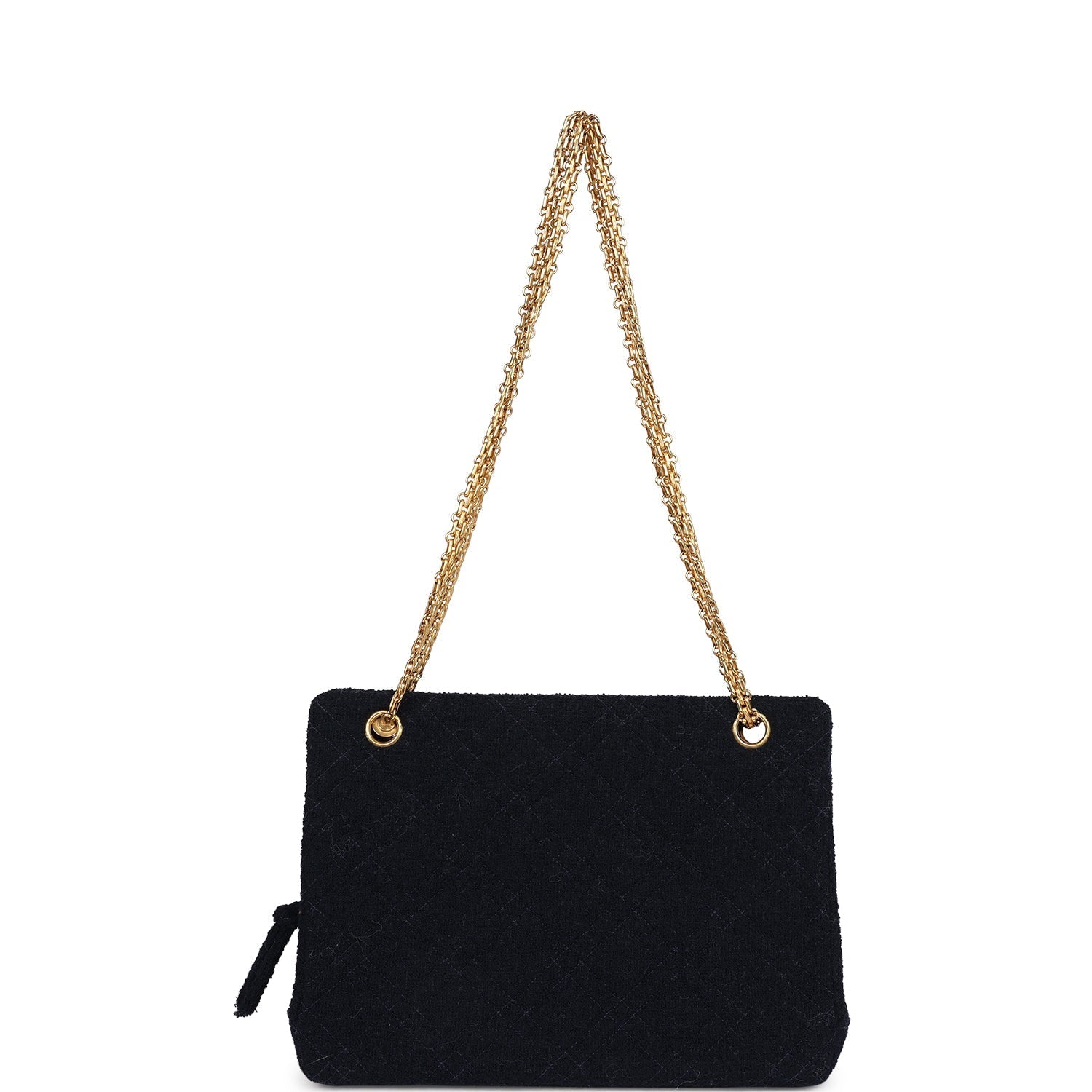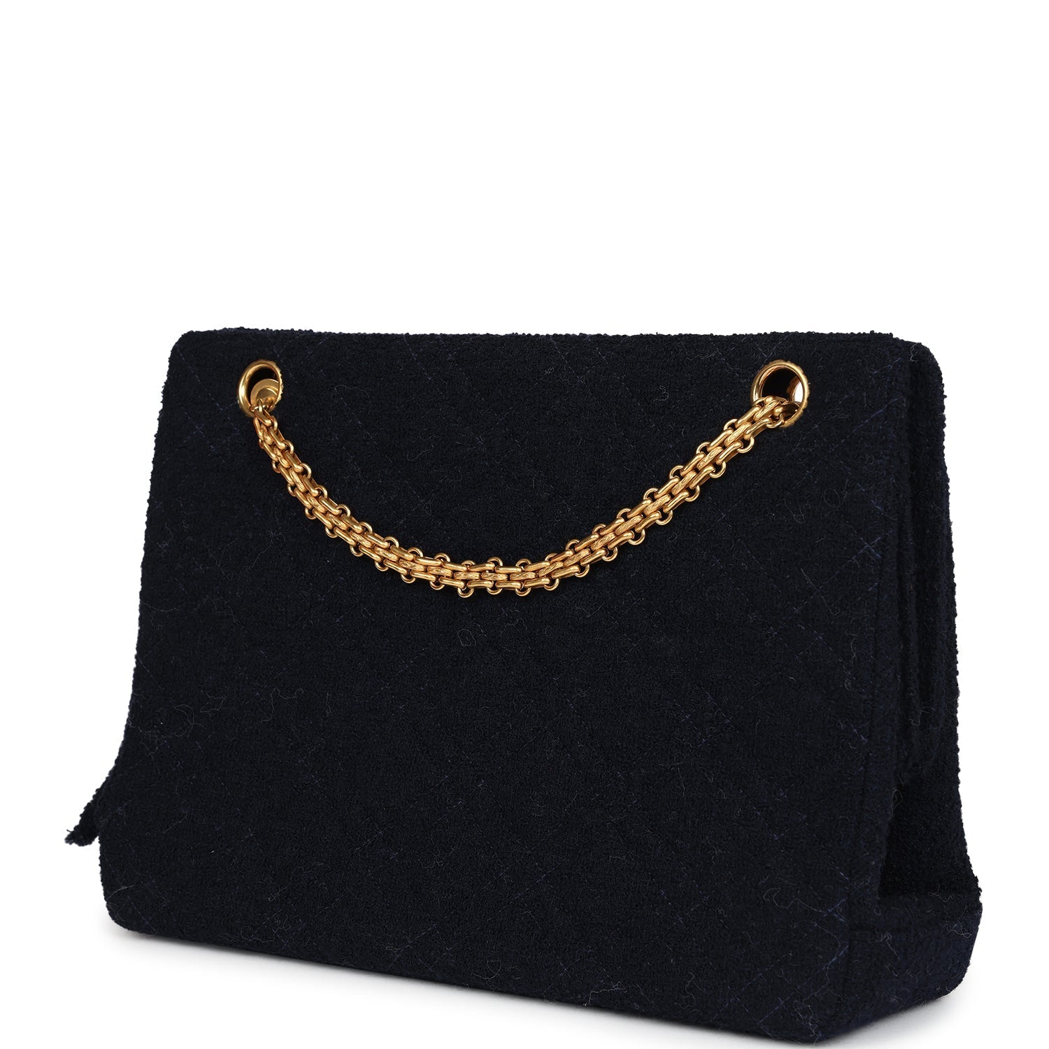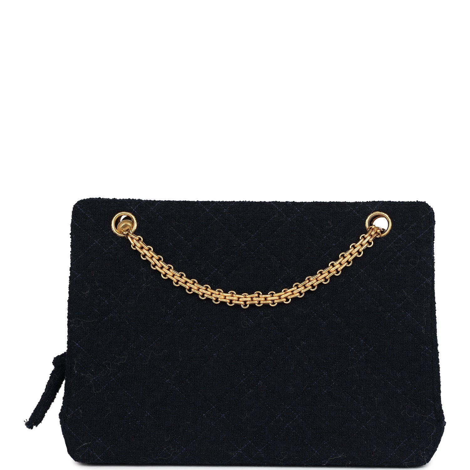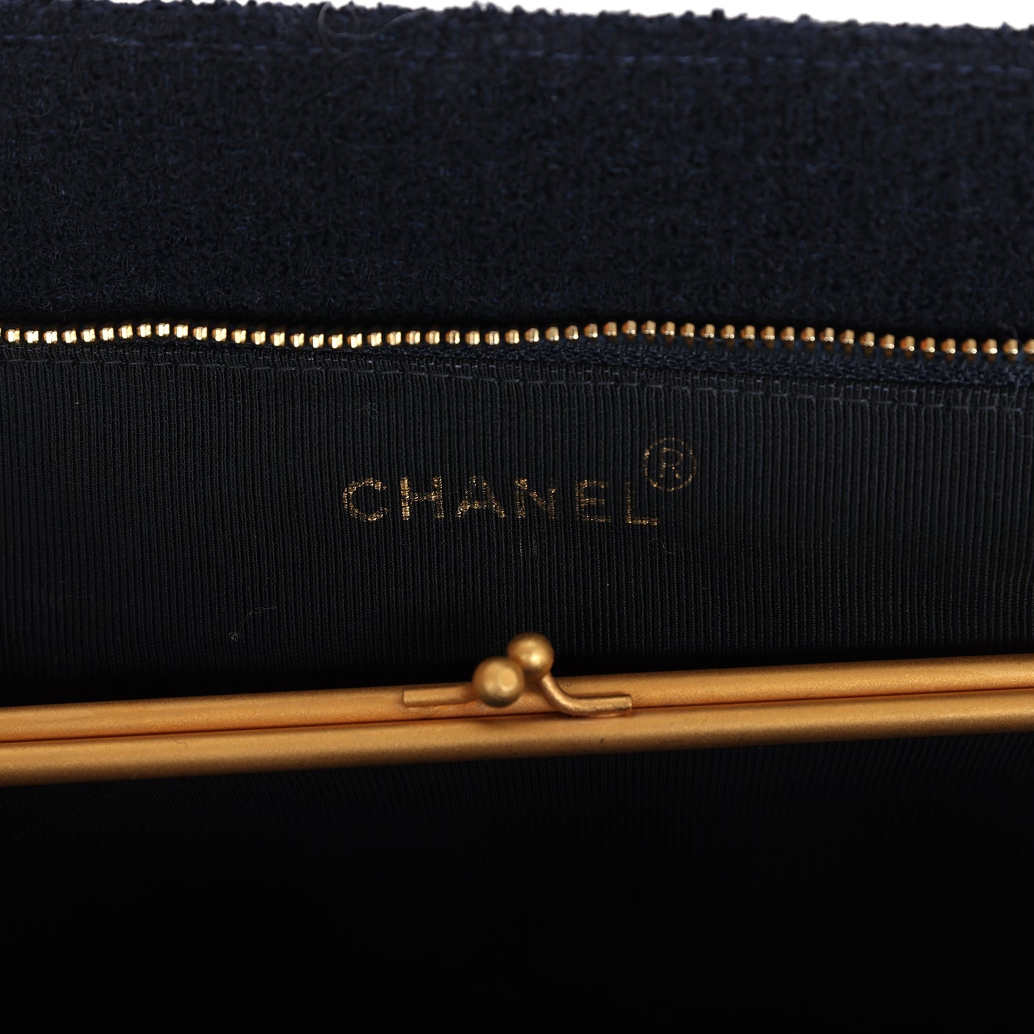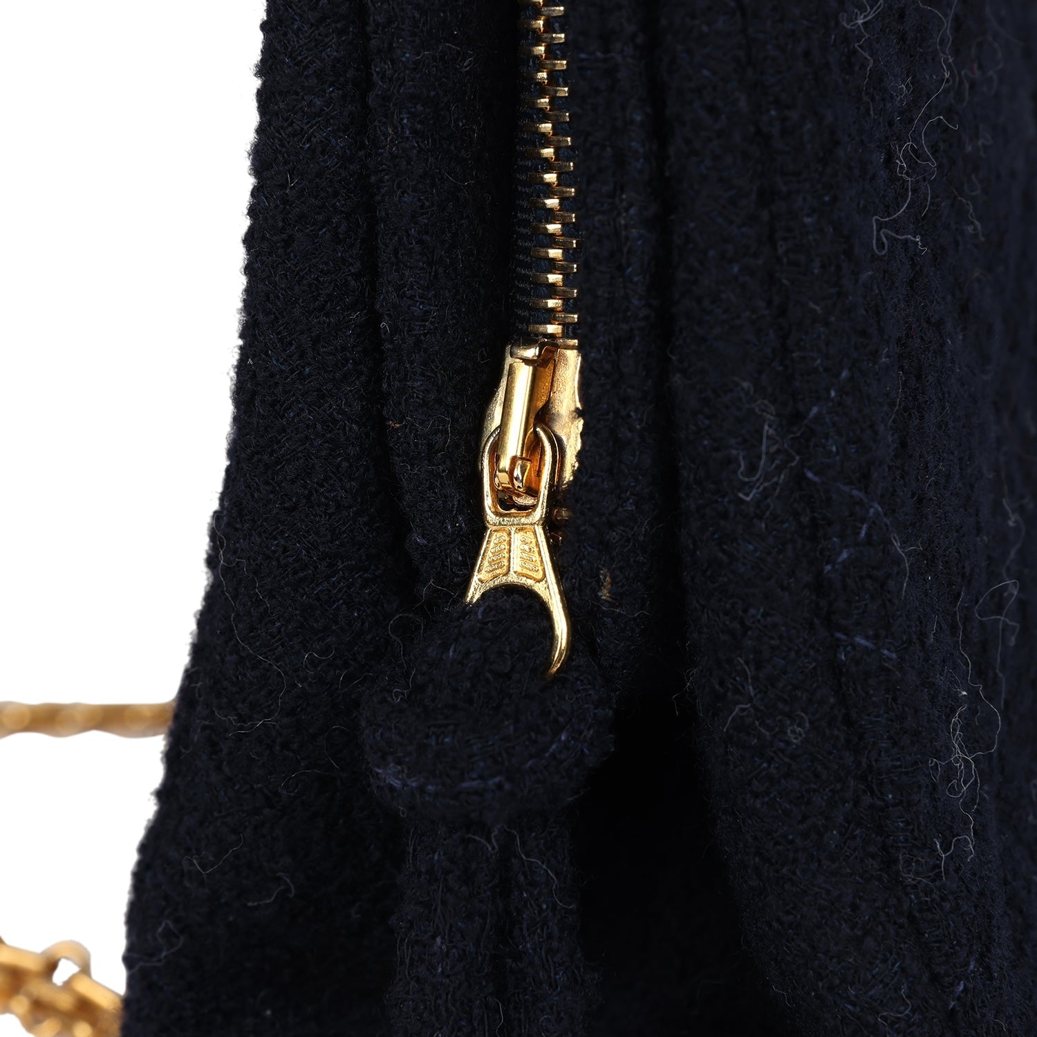 Vintage Chanel Shoulder Bag Navy Tweed Gold Hardware