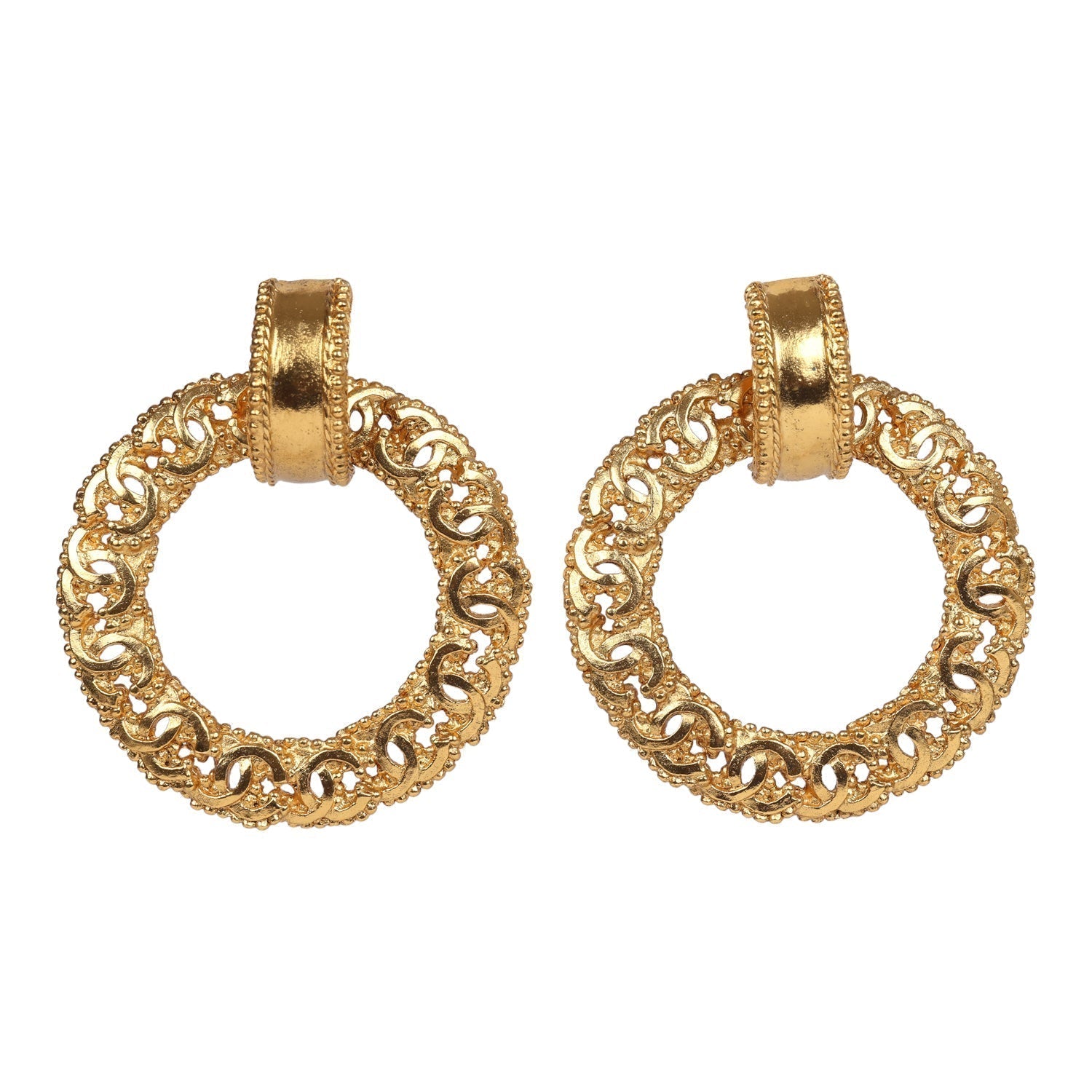 Vintage Chanel 24K Gold Plated Small CC Knocker Hoop Earrings