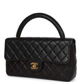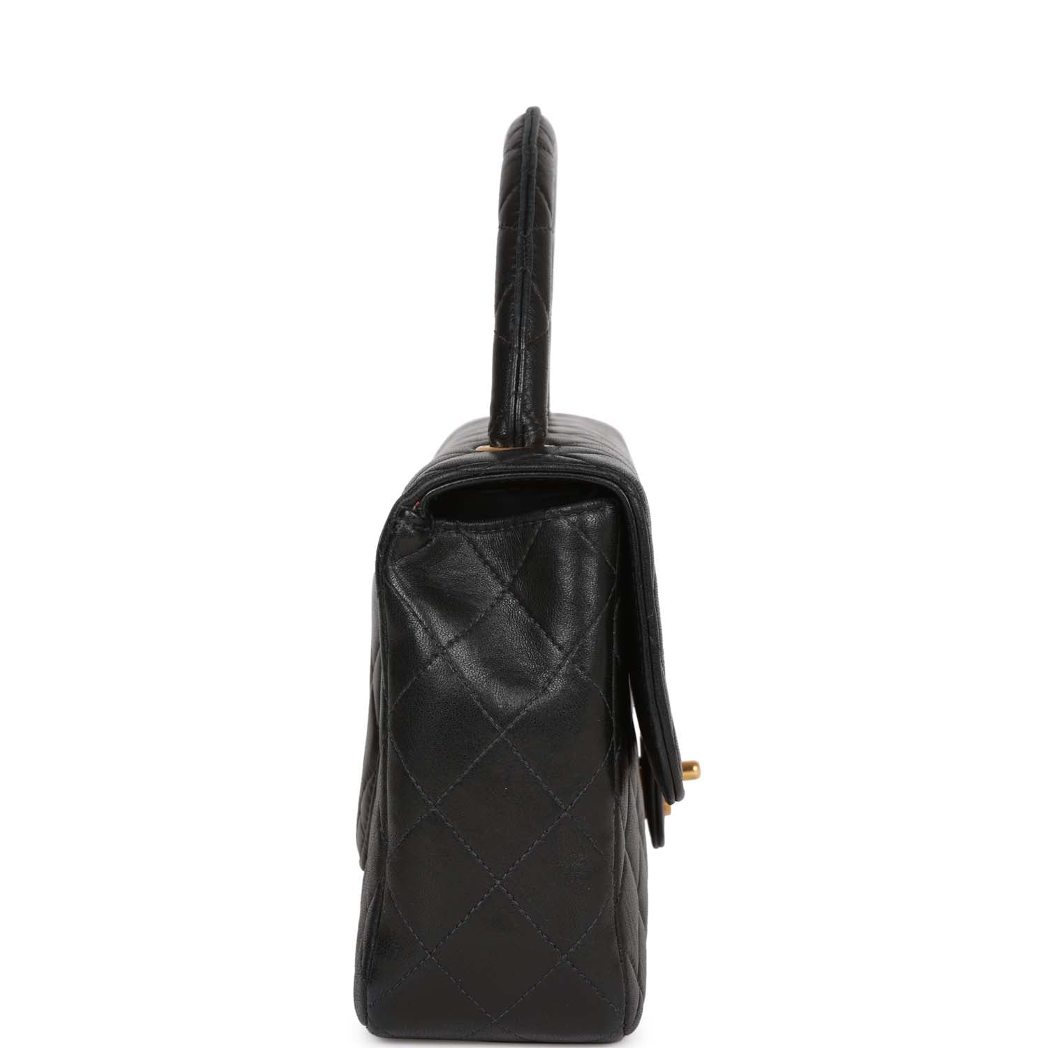 Vintage Chanel Kelly Parent Flap Bag Black Lambskin Gold Hardware