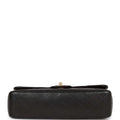 This Vintage Kelly Parent Flap Bag is in Black lambskin leather with gold hardware, featuring the signature CC turnlock closures with front flap, half moon back pocket and a black rolled top handle.