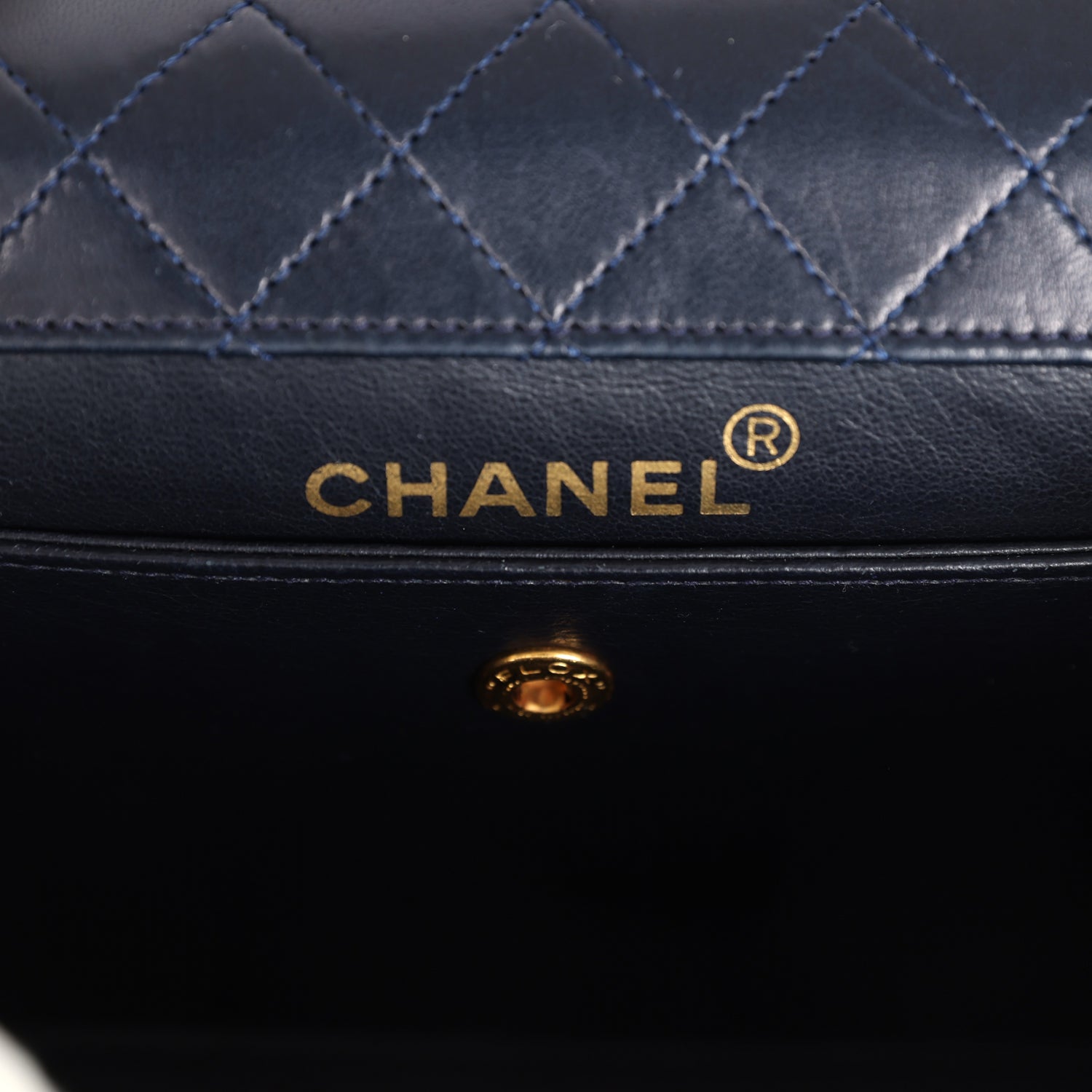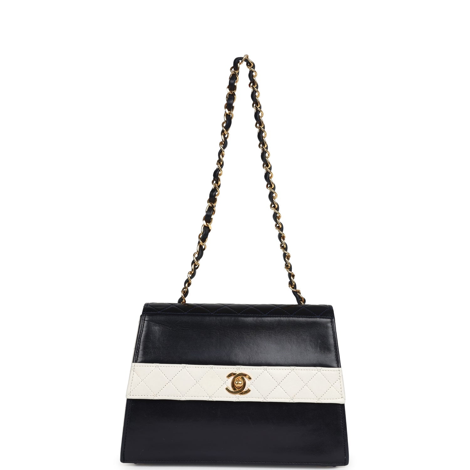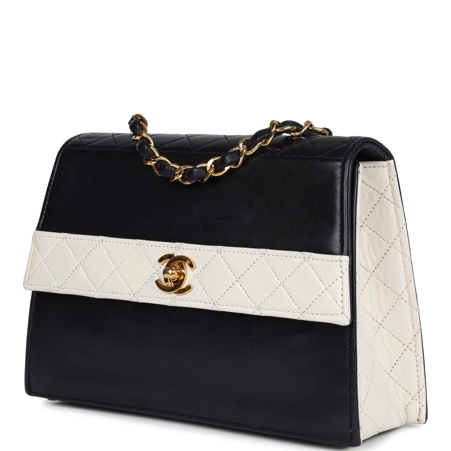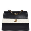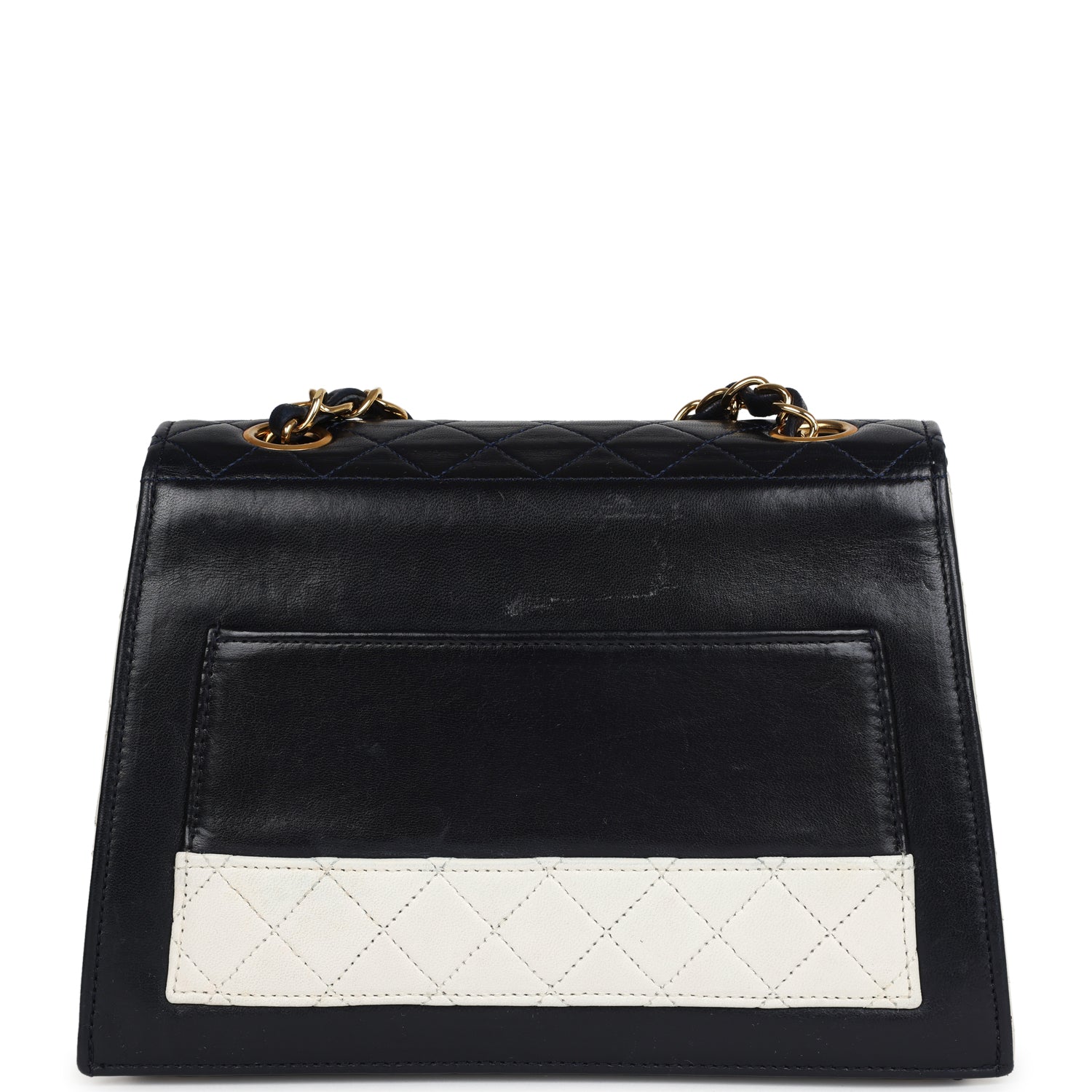 Vintage Chanel Trapezoid Flap Bag Navy and White Lambskin Gold Hardware