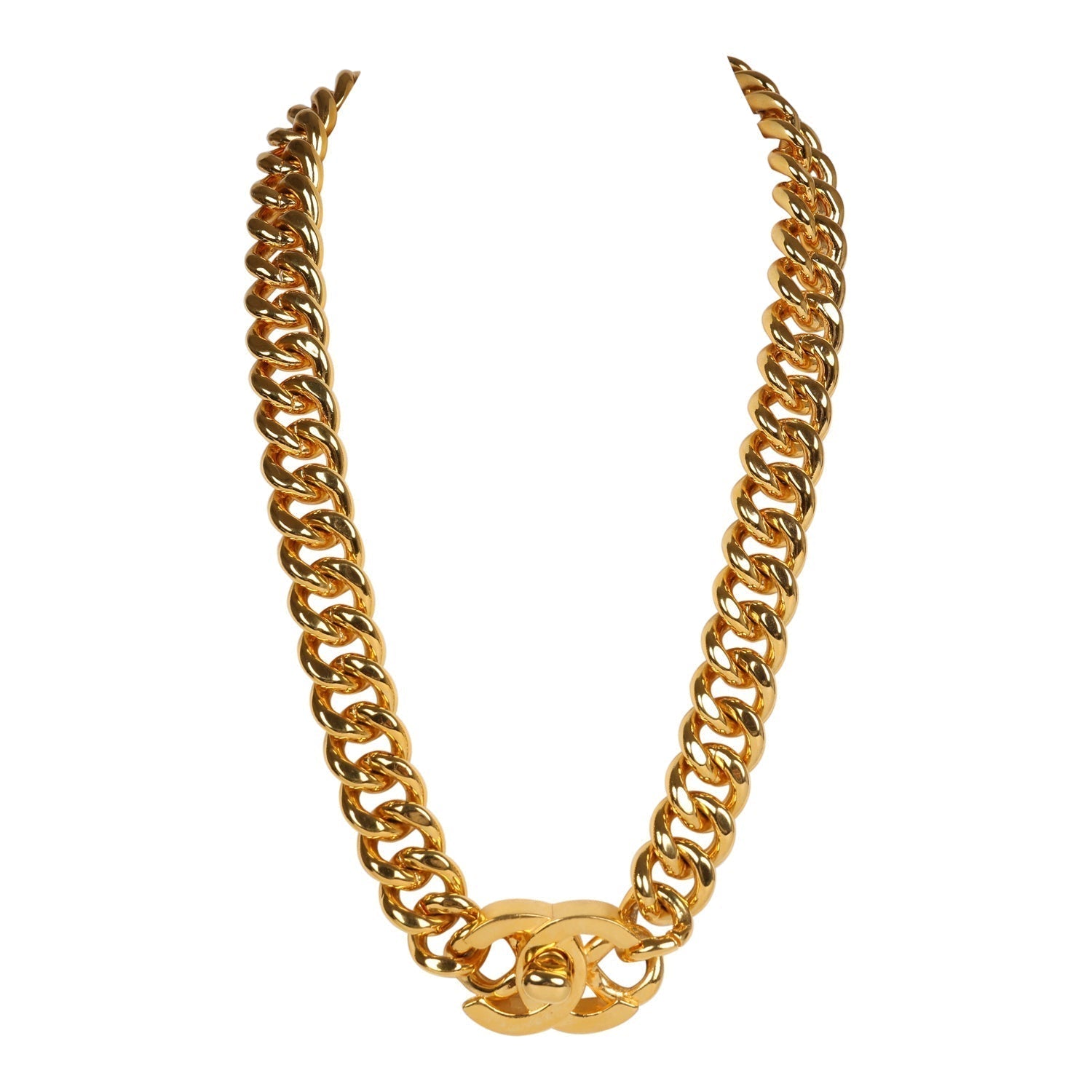 Vintage Chanel 24K Gold Plated Turn Lock Necklace