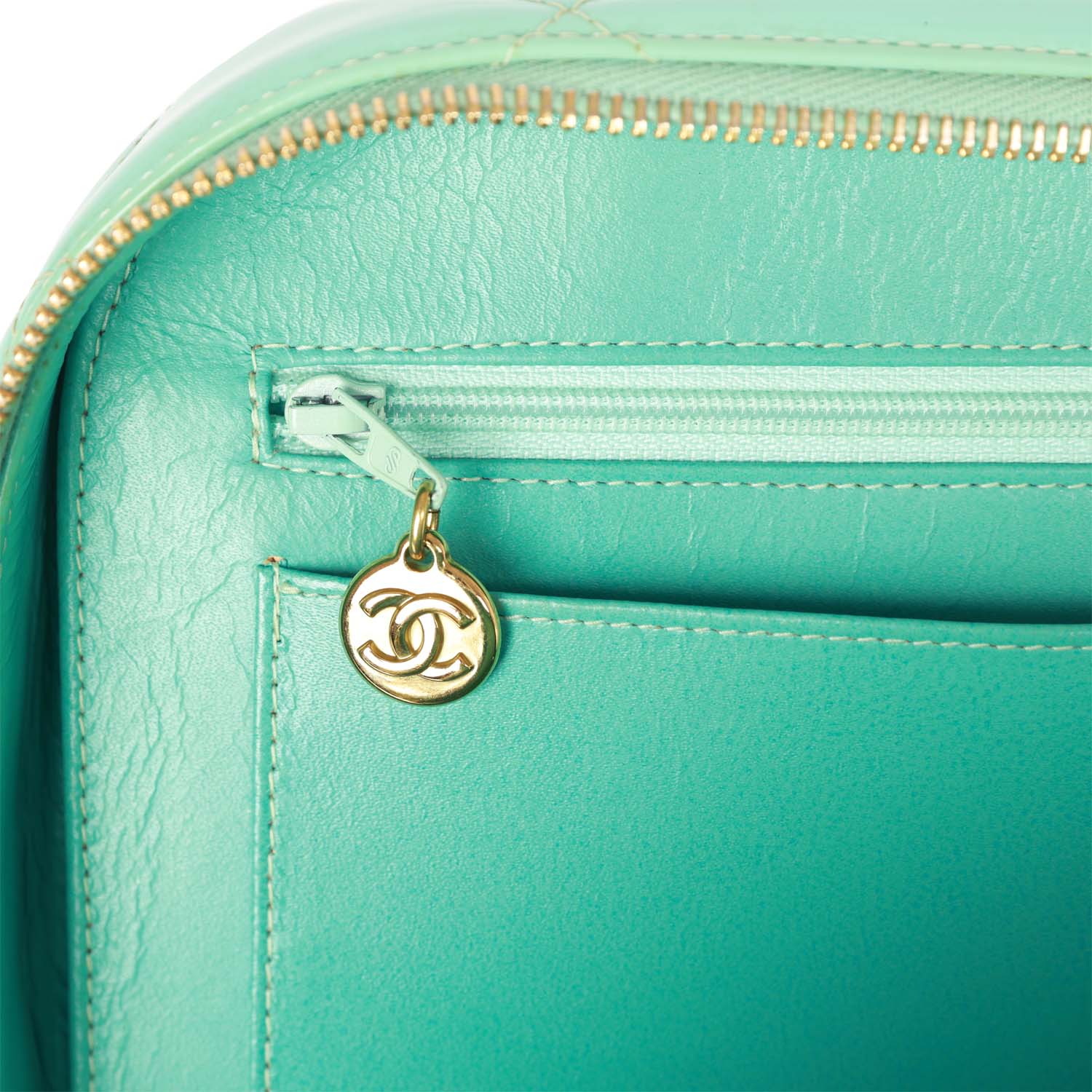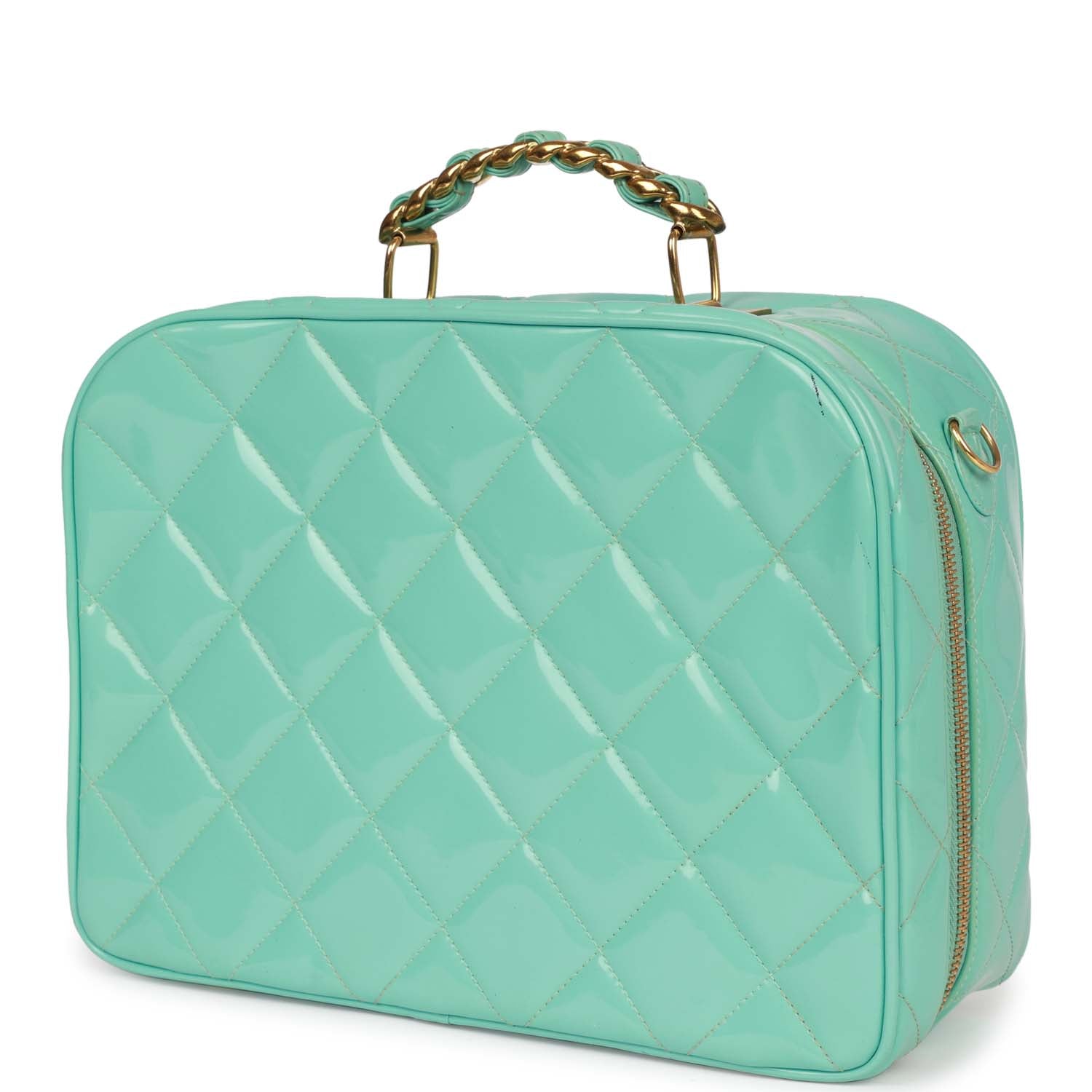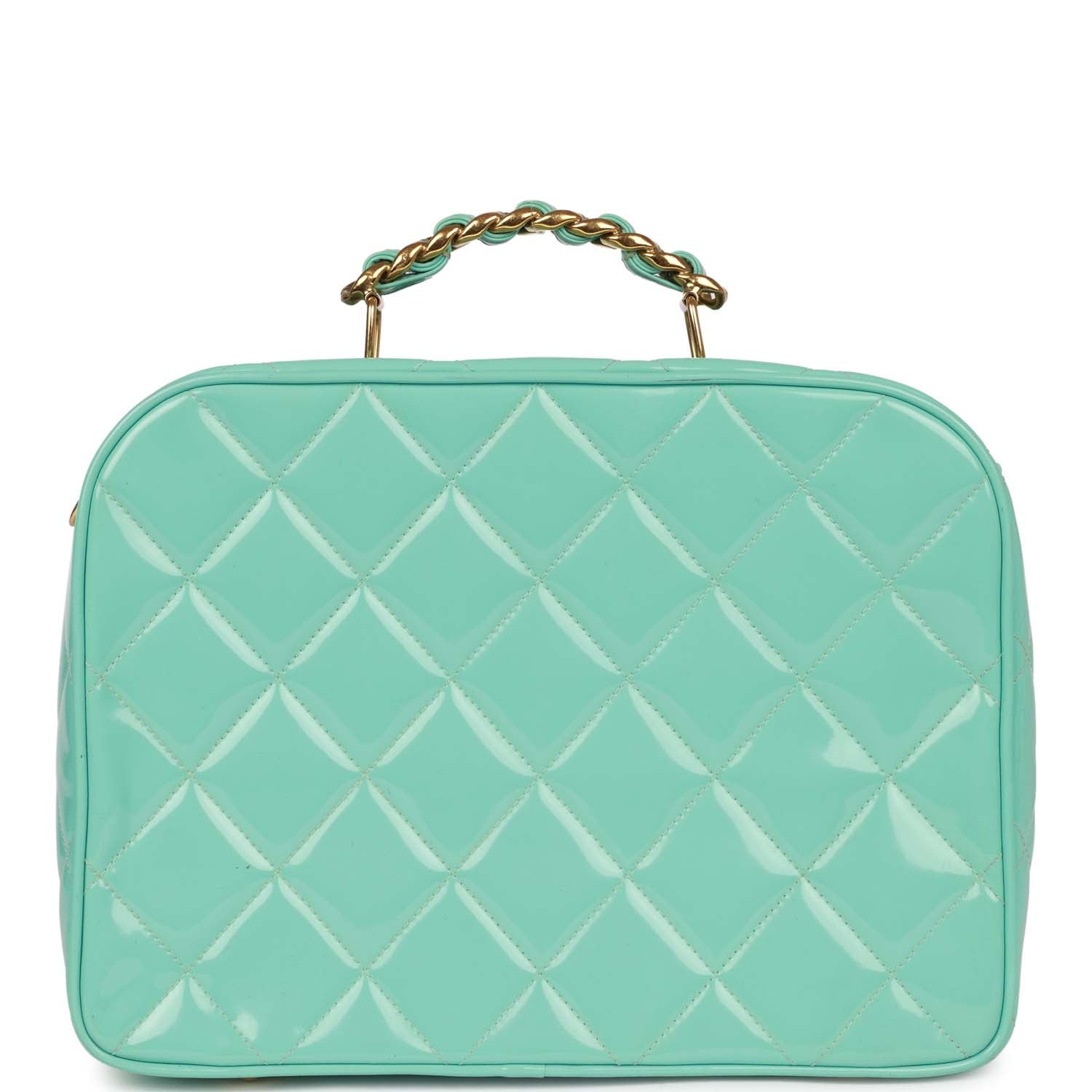 Vintage Chanel Vanity Case Bag Turquoise Patent Gold Hardware