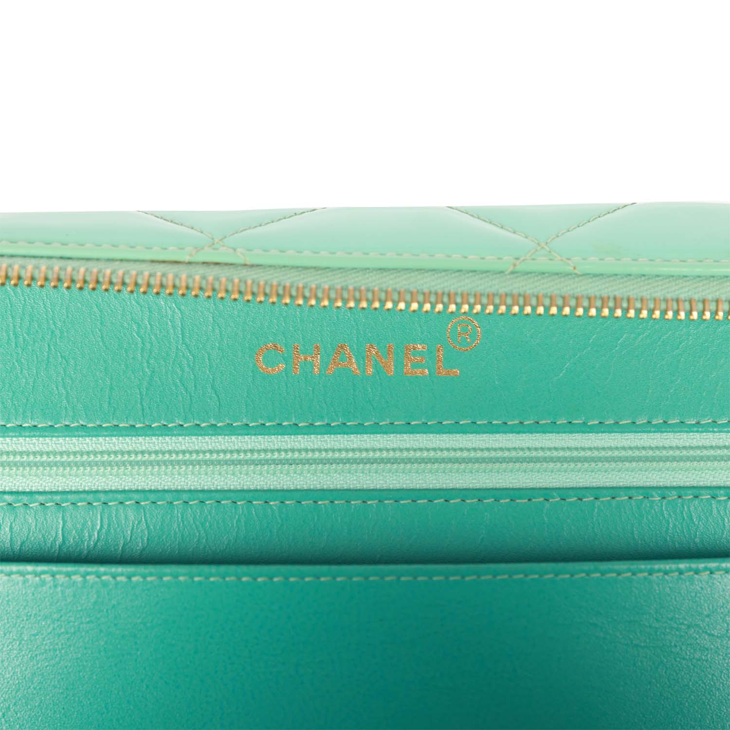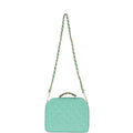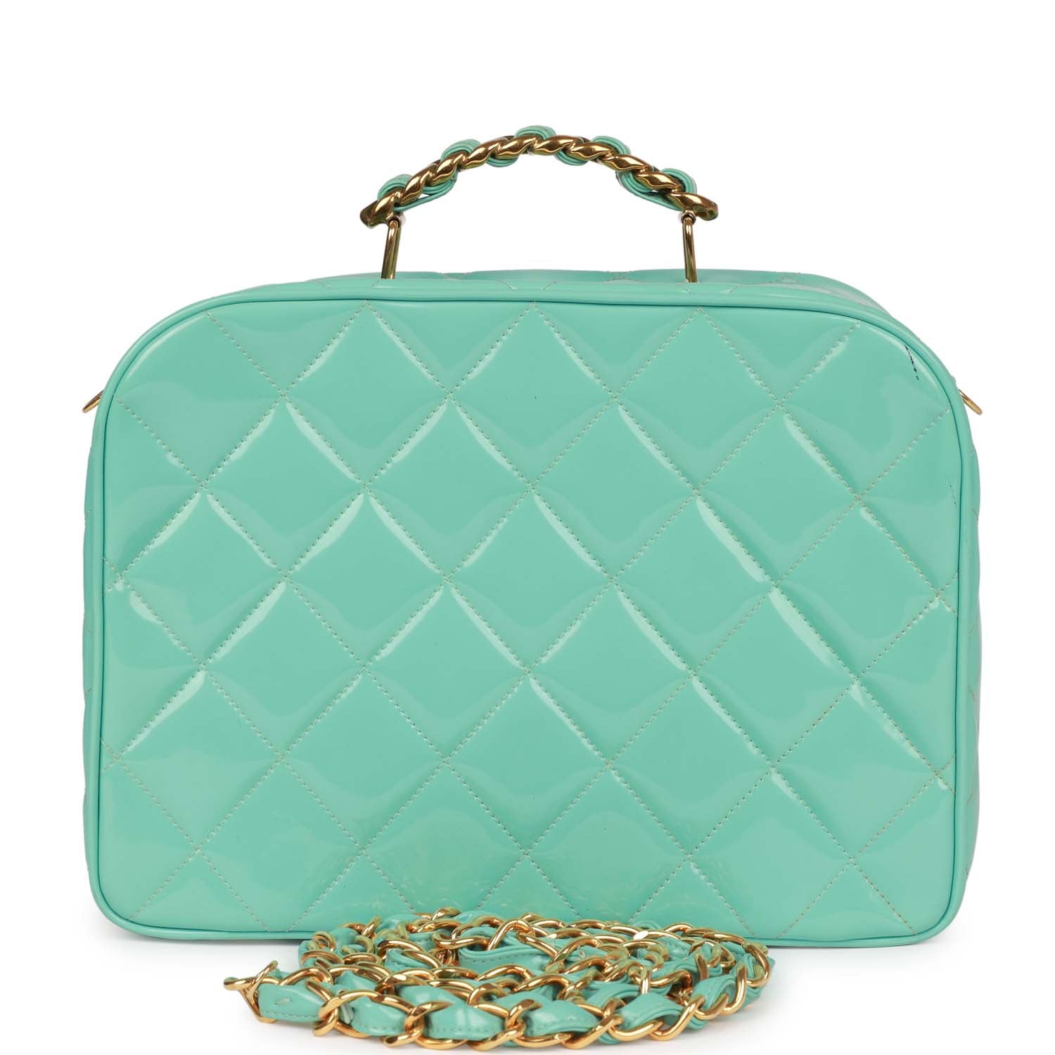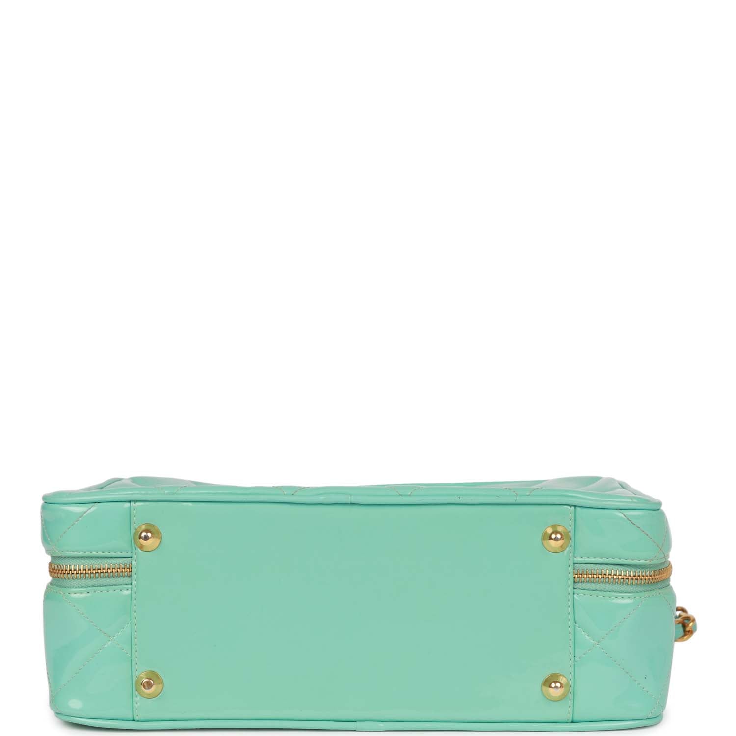 Vintage Chanel Vanity Case Bag Turquoise Patent Gold Hardware