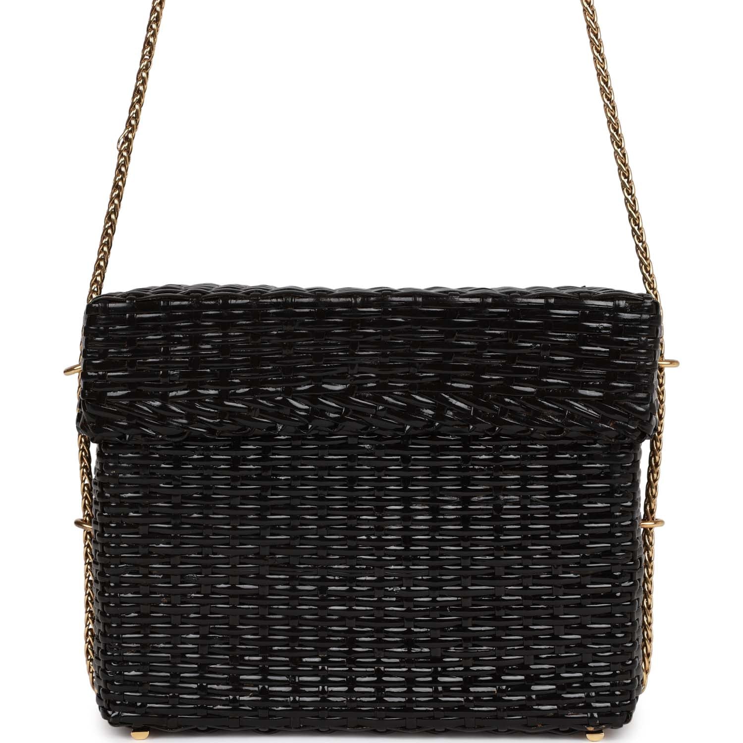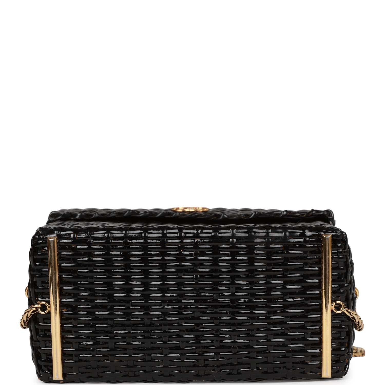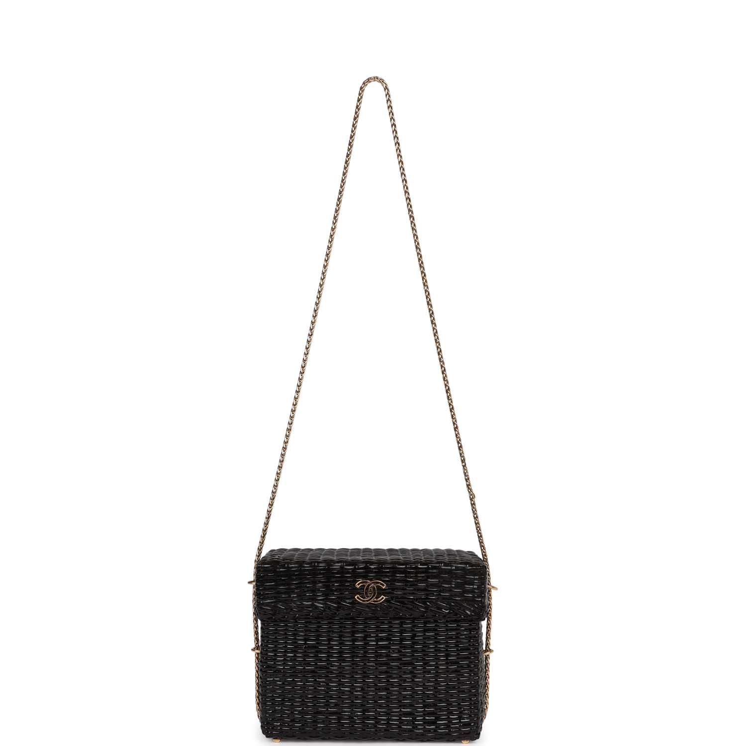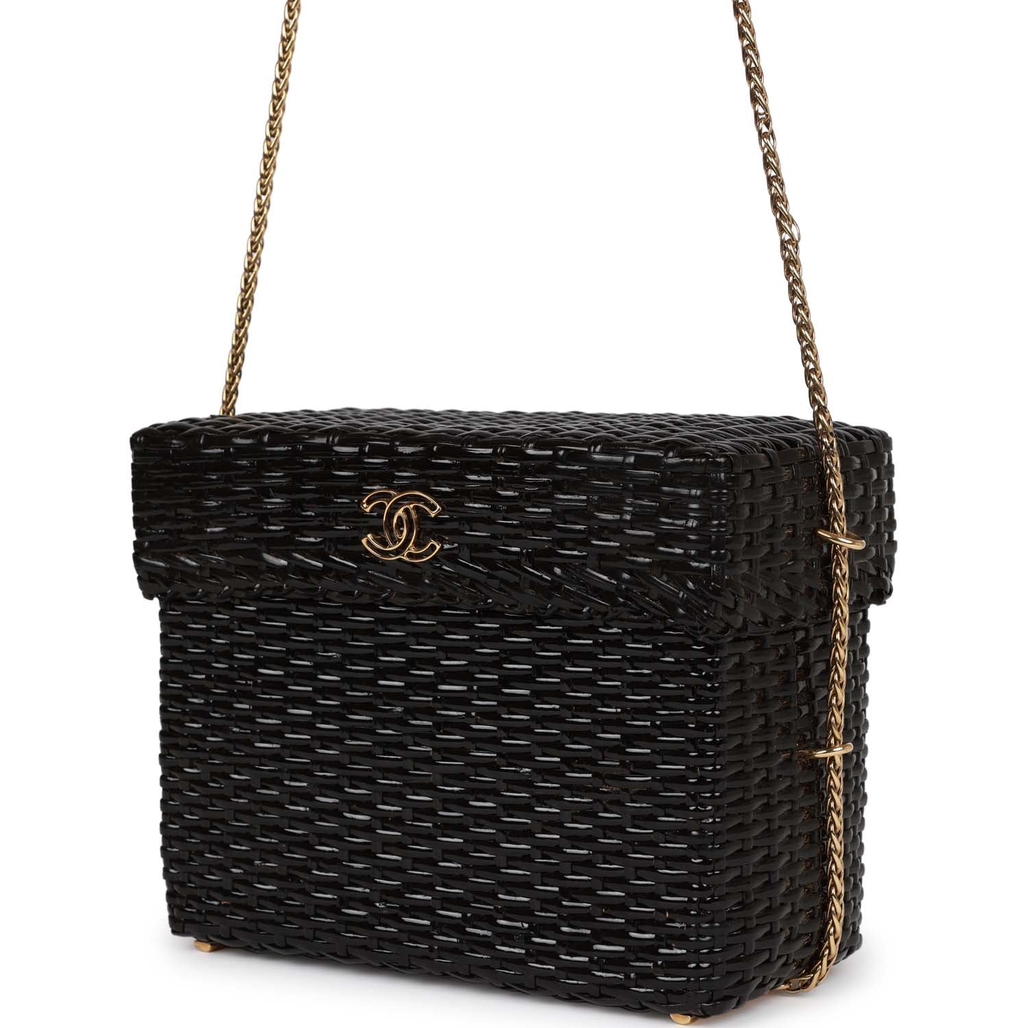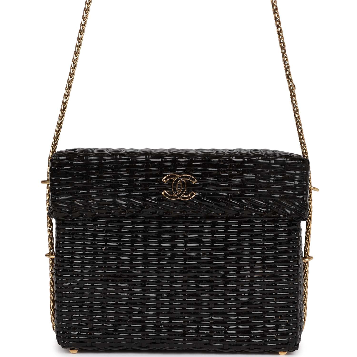 Vintage Chanel Wicker Picnic Basket Bag Black Gold Hardware