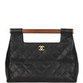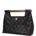 Vintage Chanel Wood Top Handle Bag Black Caviar Gold Hardware