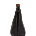 The interior is lined with black leather and features a zip pocket with logo pull and a slip pocket underneath on the rear wall.