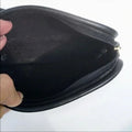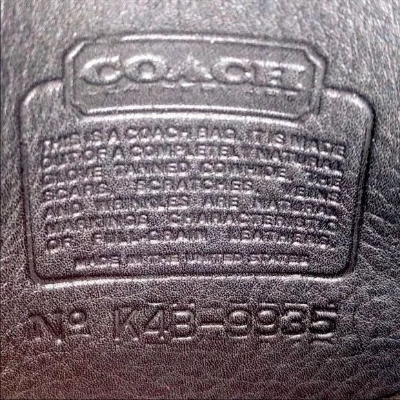 The lining is black leather that is very clean. Inside, there is one compartment and interior zip and slot pockets. It has the Coach 'creed' and the serial number of No. K4B-9935, which is the style number for a Hadley style along the back. It has a classic look that will never go out of style.