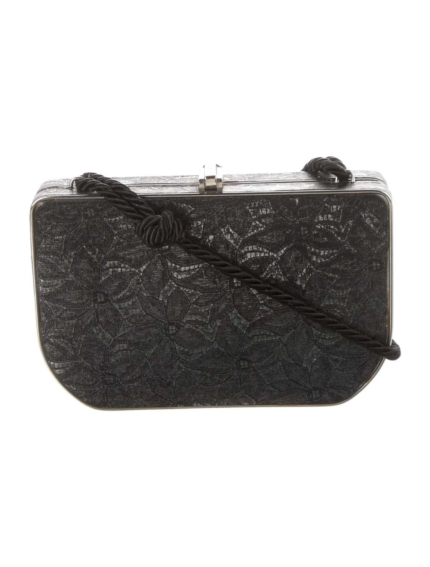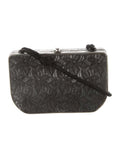 Fendi black floral lace print & chrome metal mini two-way evening bag