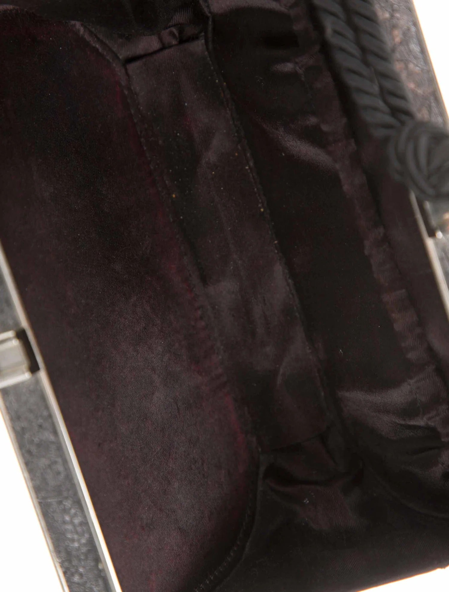 Made of timeless black satin, this Fendi evening bag is sure to become a trusted go-to. Its elegant design features silver-tone hardware and a single interior pocket, offering ease of use and sophisticated style.