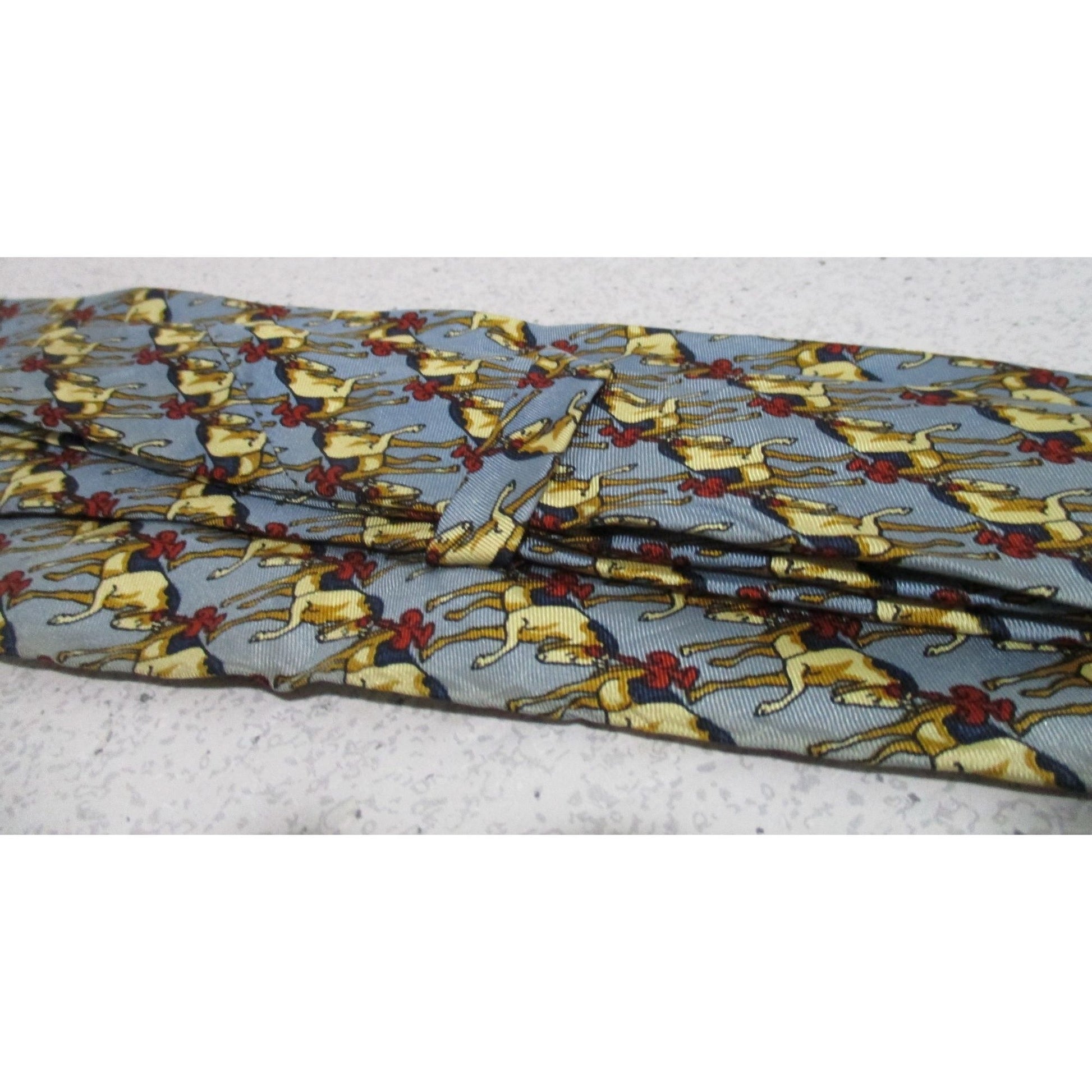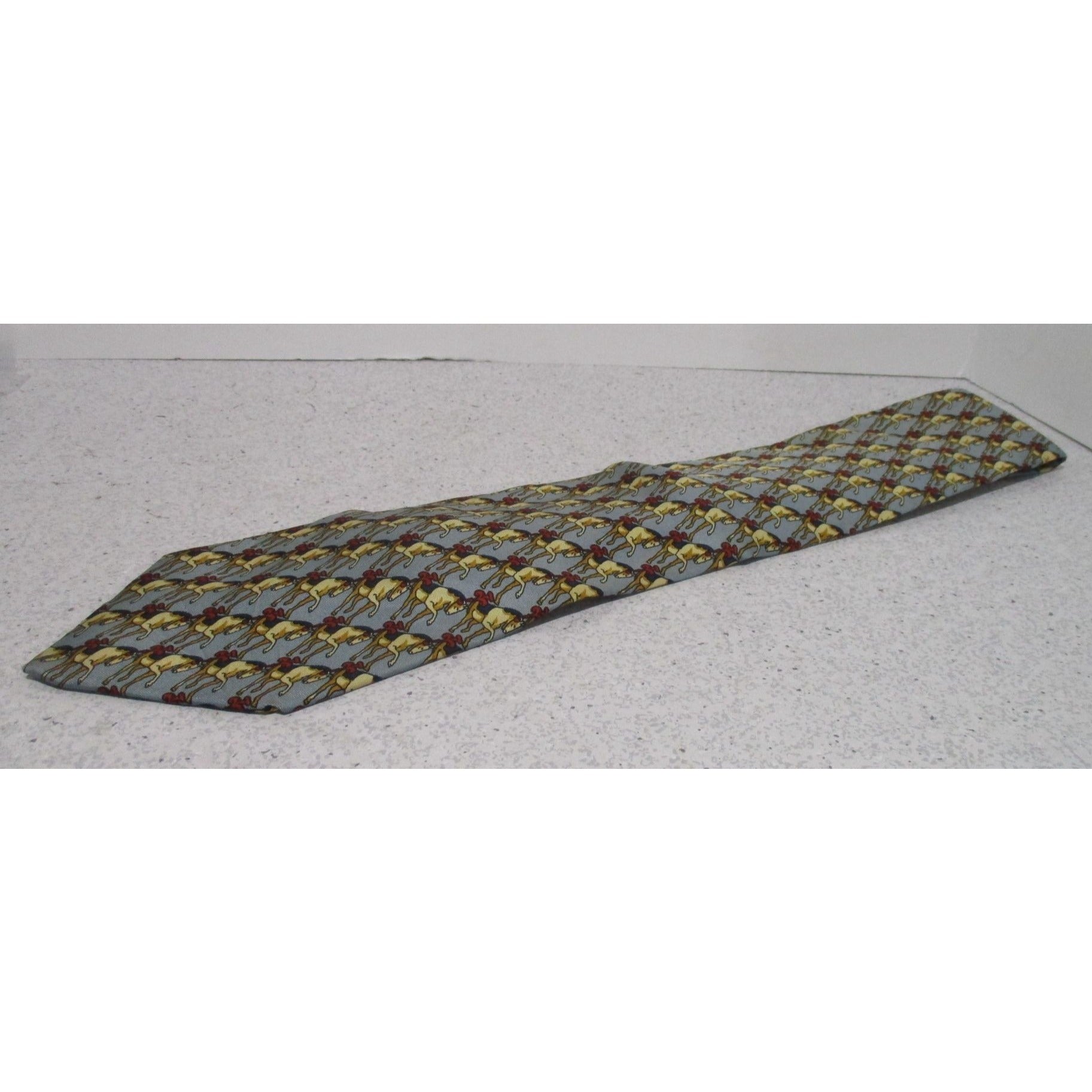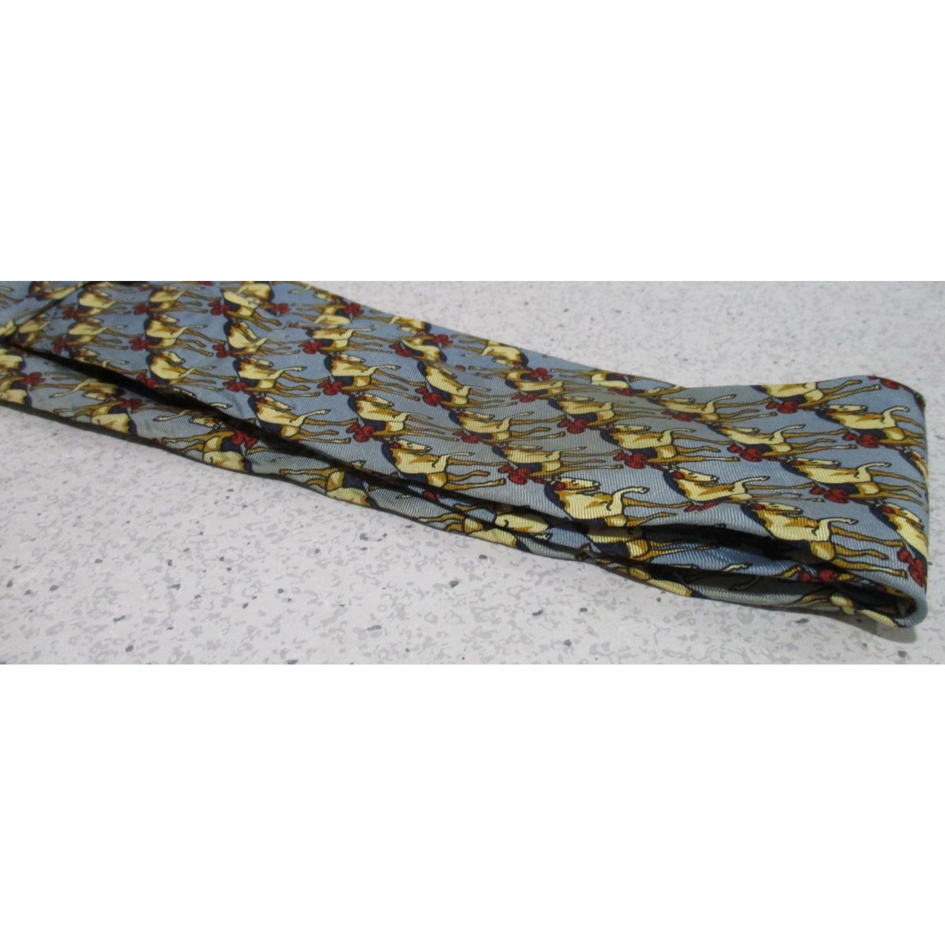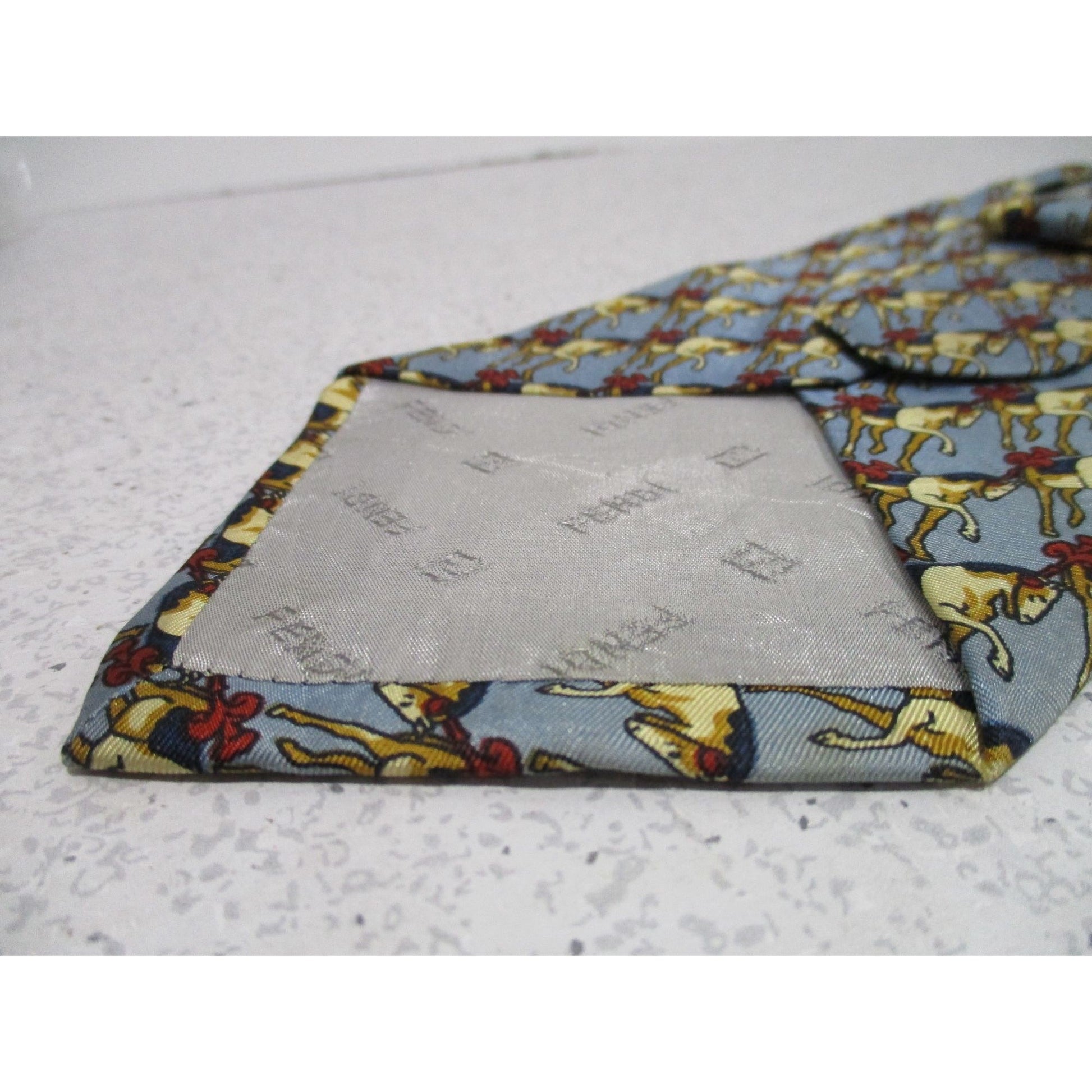 For sale is a vintage, Fendi, tie with a print of stylized horses on a blue background. It is a classic theme in a unique silk tie by Fendi.