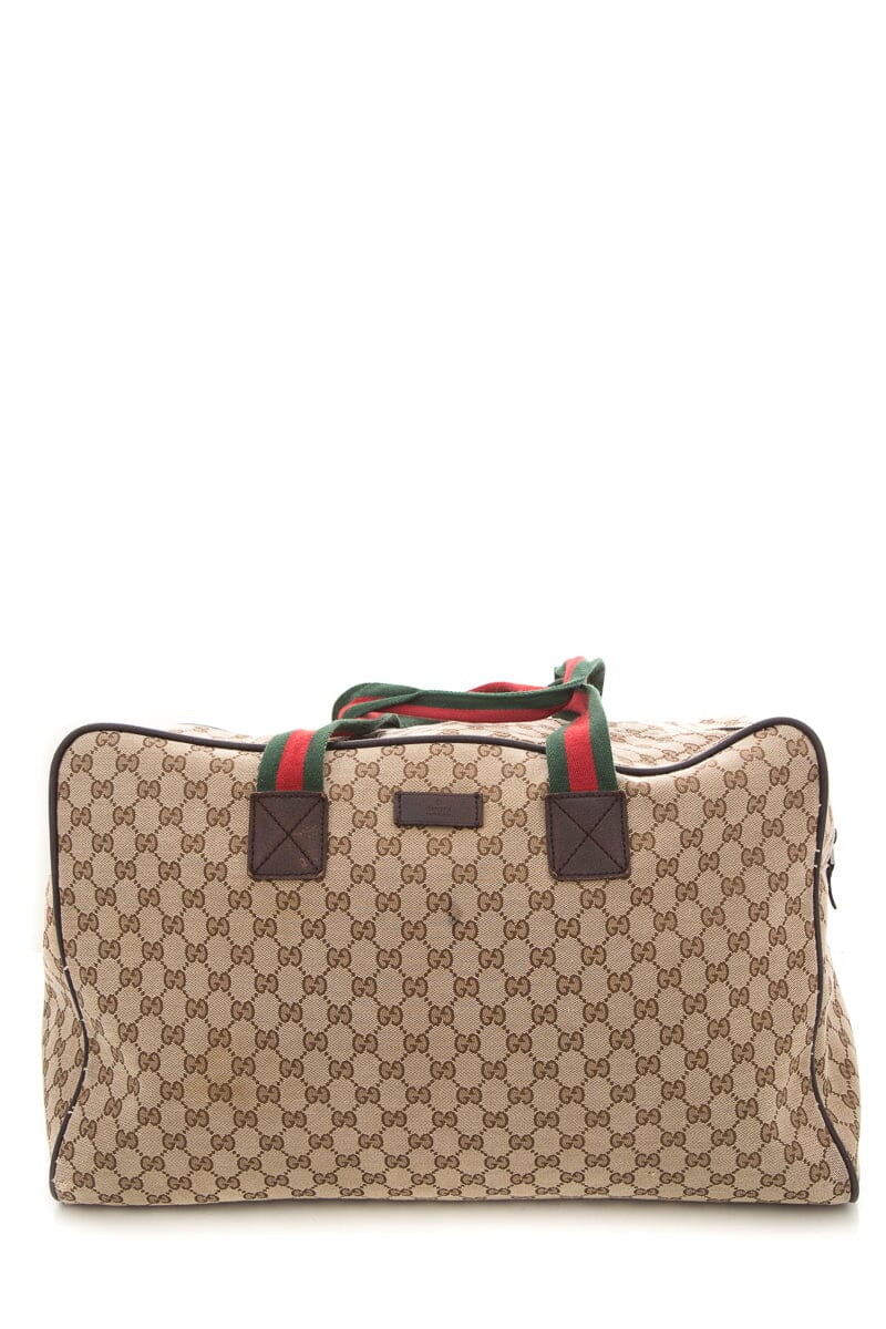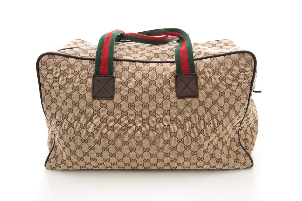 Vintage Gucci Monogram GG Canvas Duffle. This item is vintage; some fraying and marks on canvas as well as wear on leather.