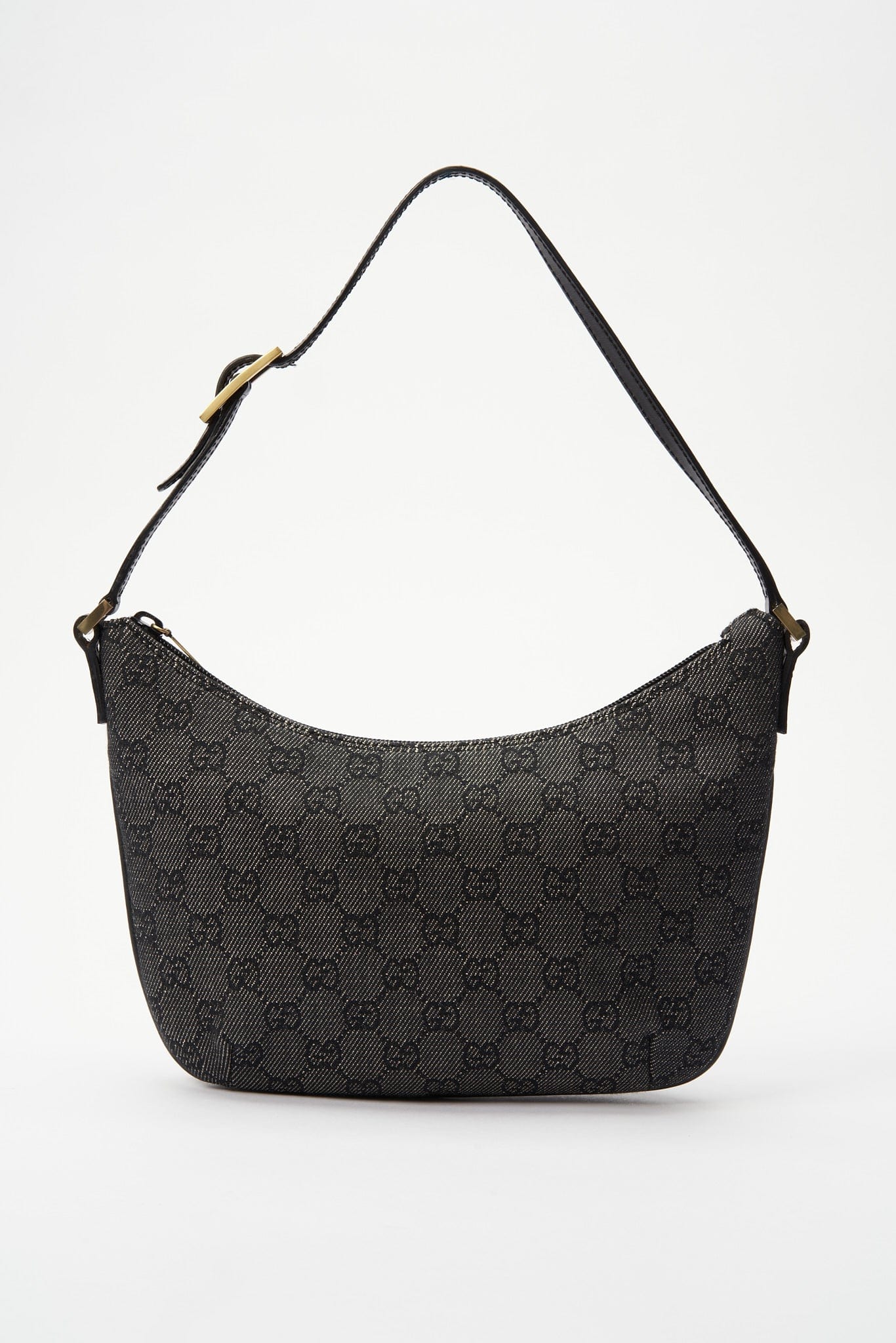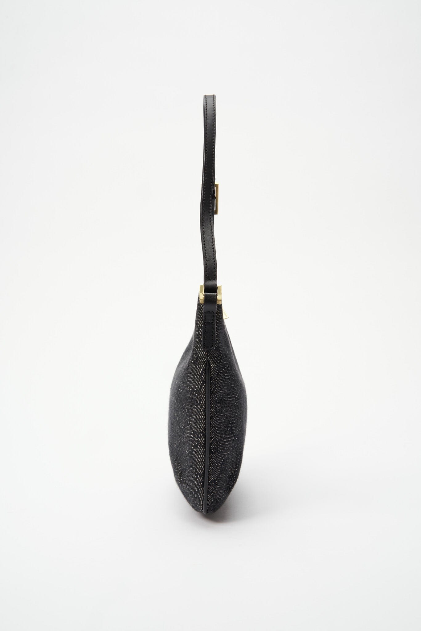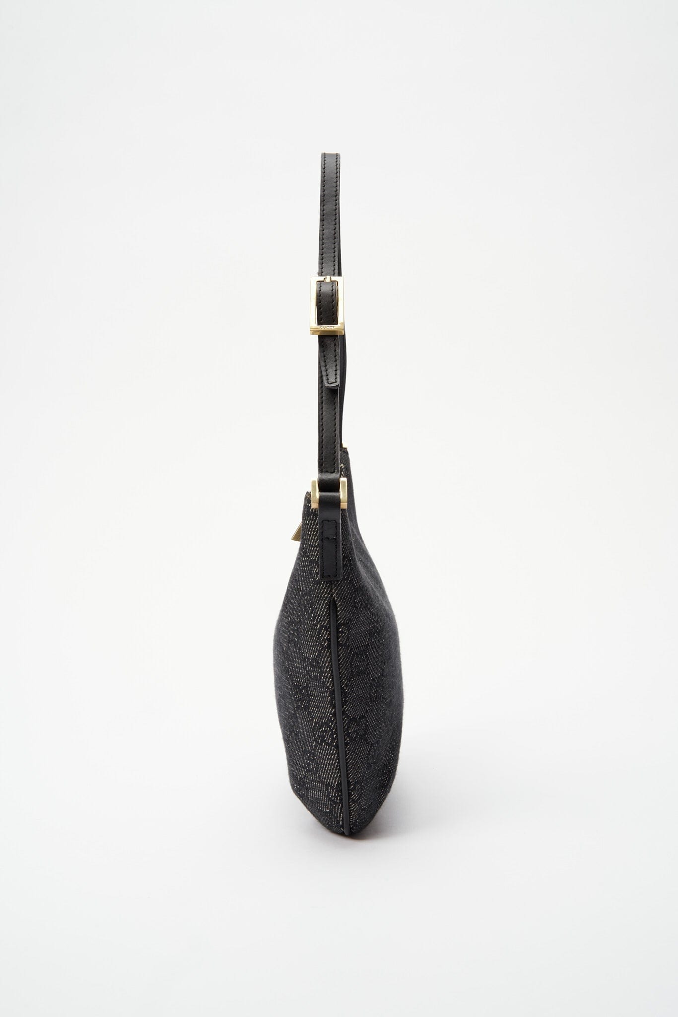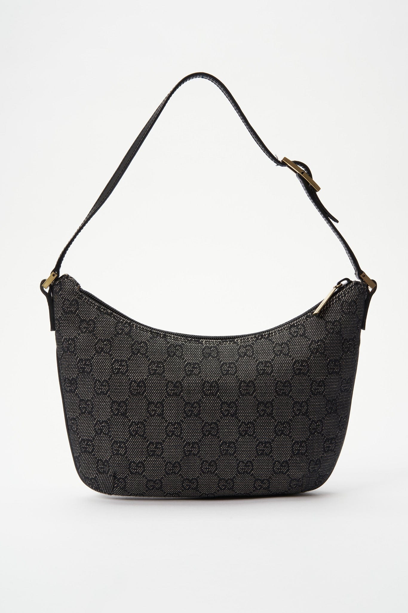A stunning vintage Gucci�pochette�style shoulder bag made from the iconic GG black canvas with�black�leather trim and Gucci branded gold hardware.