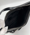 A stunning vintage Gucci shoulder bag made from the iconic GG black canvas with black leather trim and silver hardware.