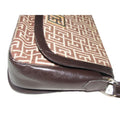 For sale is a vintage, Pierre Balmain, brown and white, geometric, "subway" print fabric and brown leather, shoulder bag with a twist closure on top of the envelope, adjustable shoulder strap, multiple compartments and hardware Golden ! This is a unique take on a classic style that will always be in style!