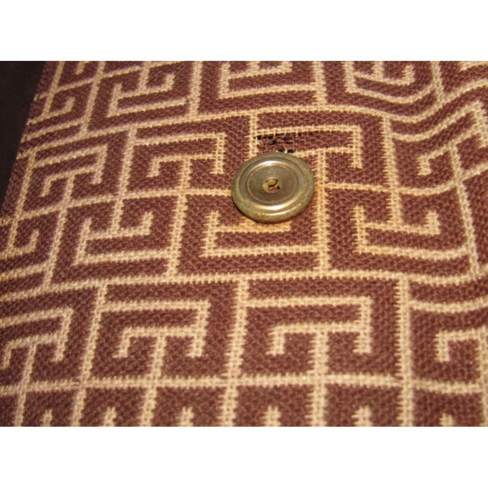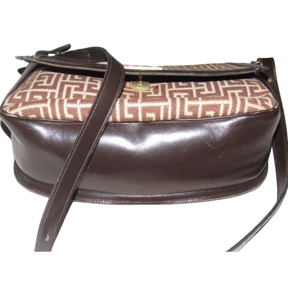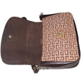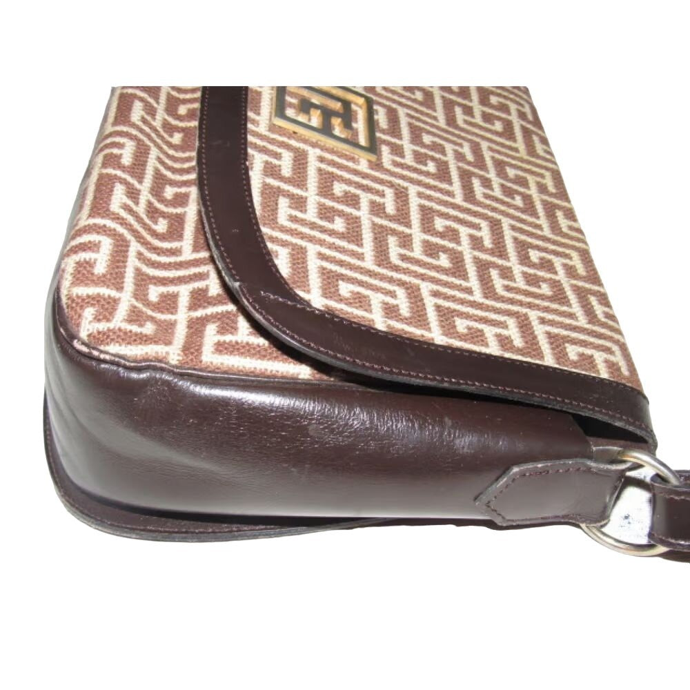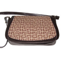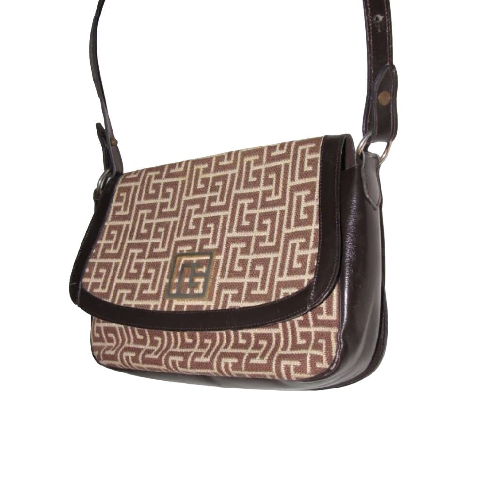 Vintage, Pierre Balmain, brown & white, geometric, "subway" print wool & brown leather, two-way shoulder bag with gold hardware