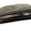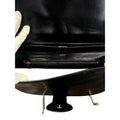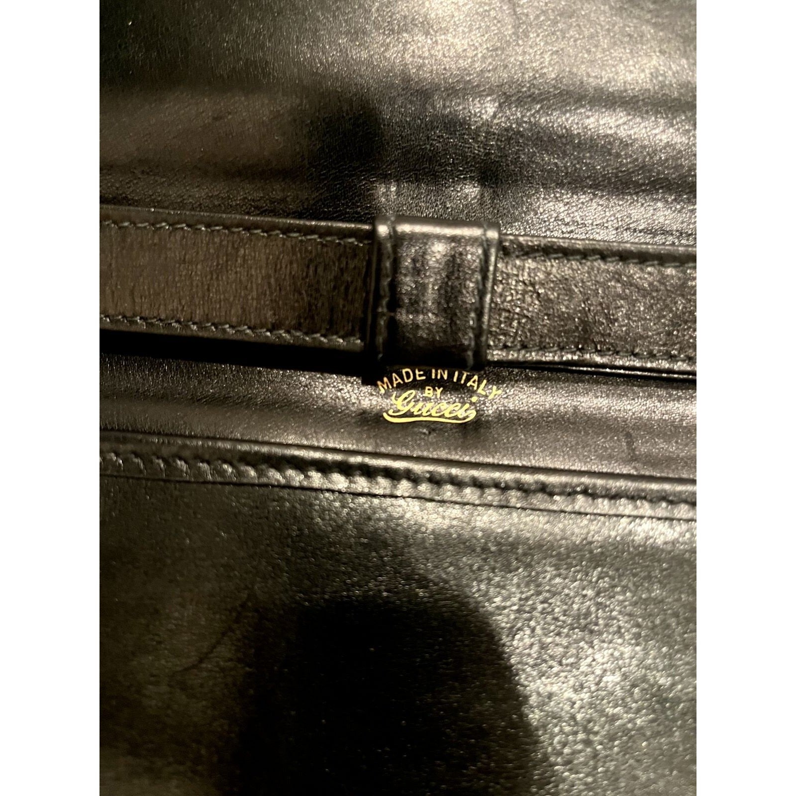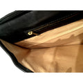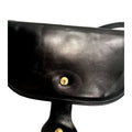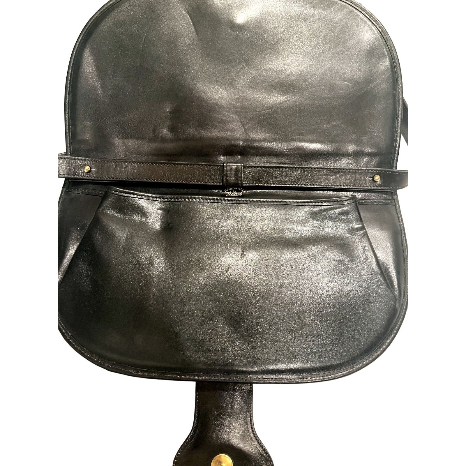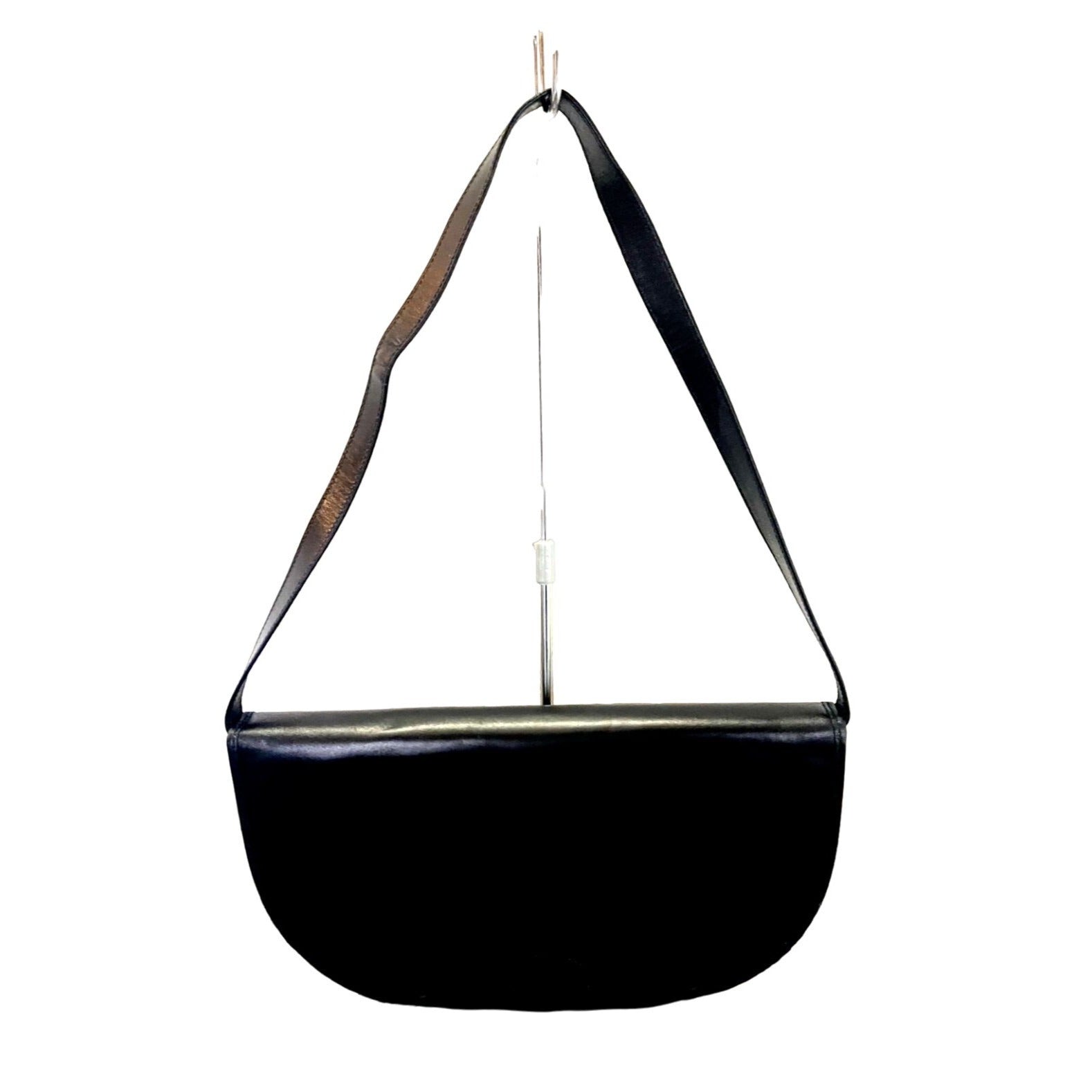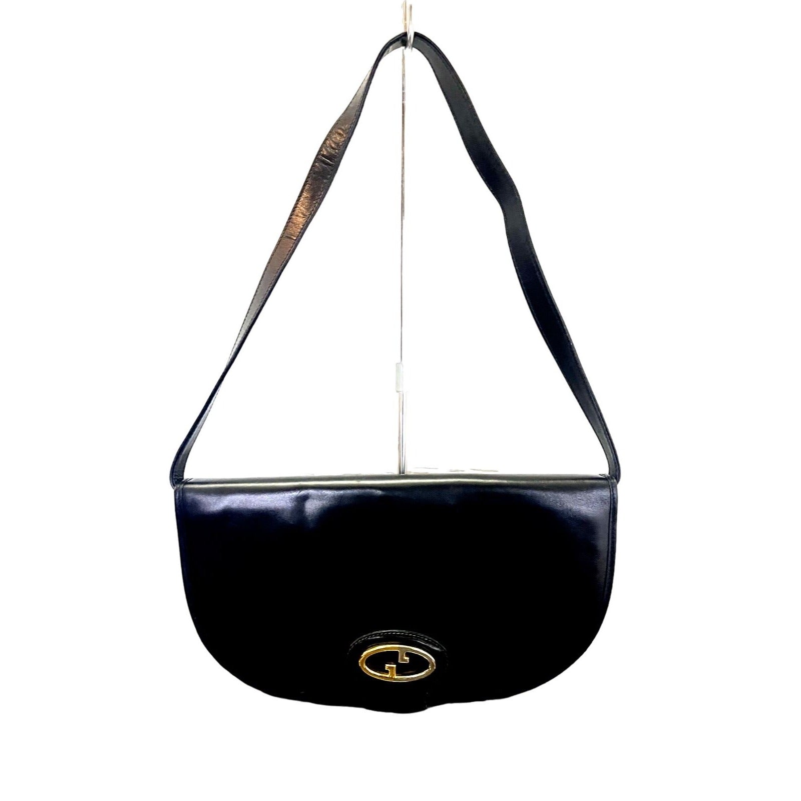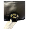 Vintage, rare, black leather, Gucci shoulder bag with a large, two-tone 'GG' emblem and removable strap