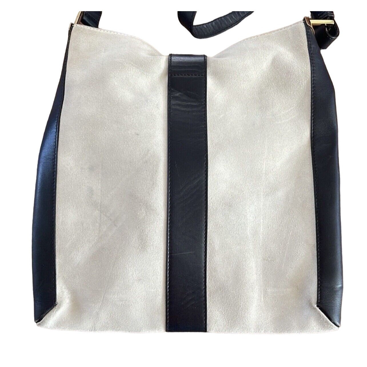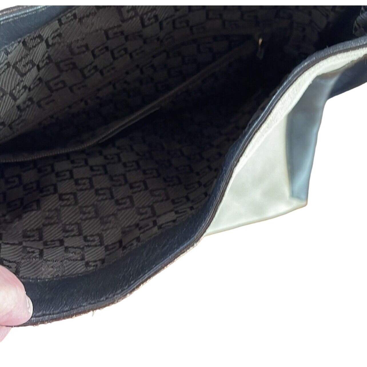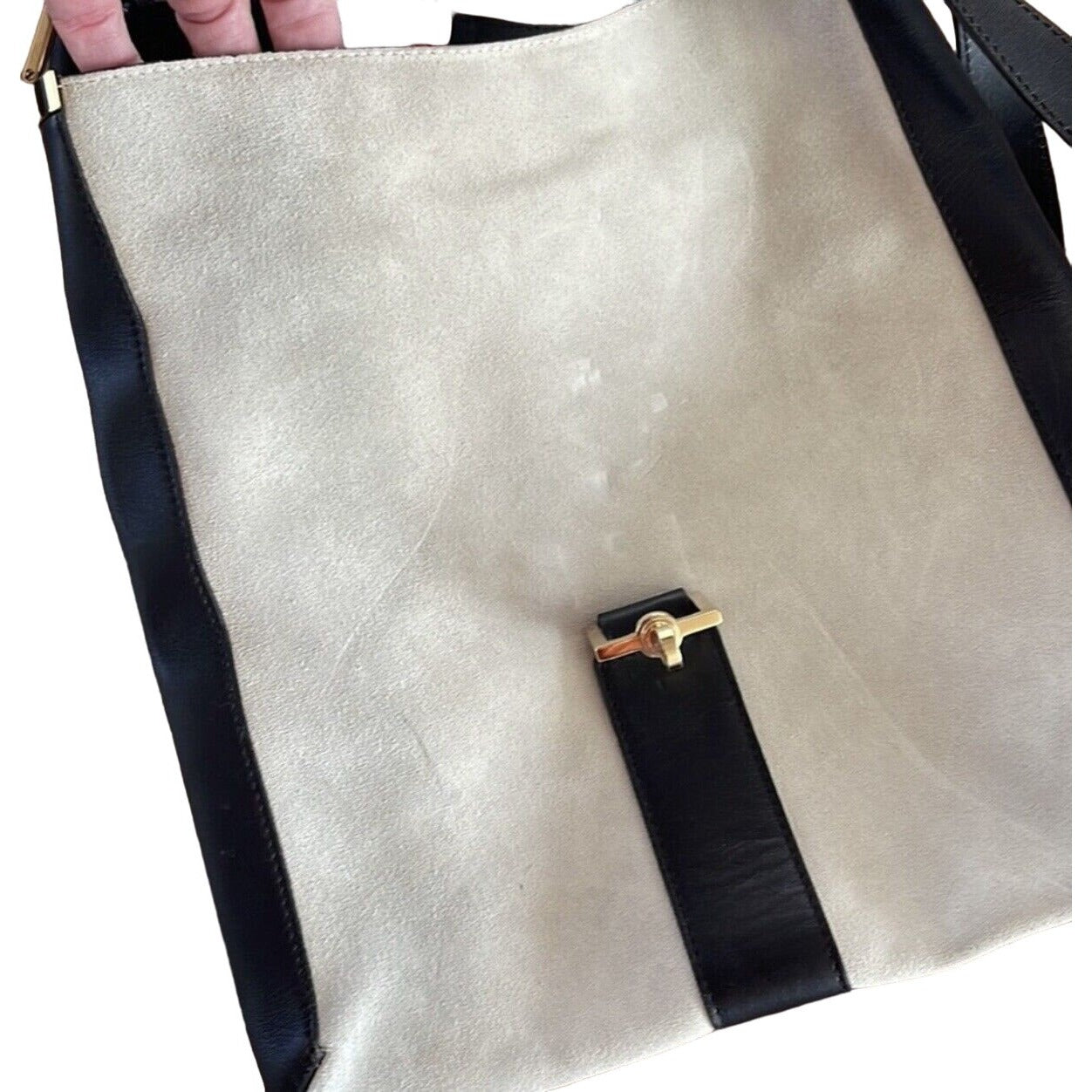 Vintage, Tom Ford era, Gucci, ivory suede & black leather, Jackie hobo shoulder bag with gold hardware