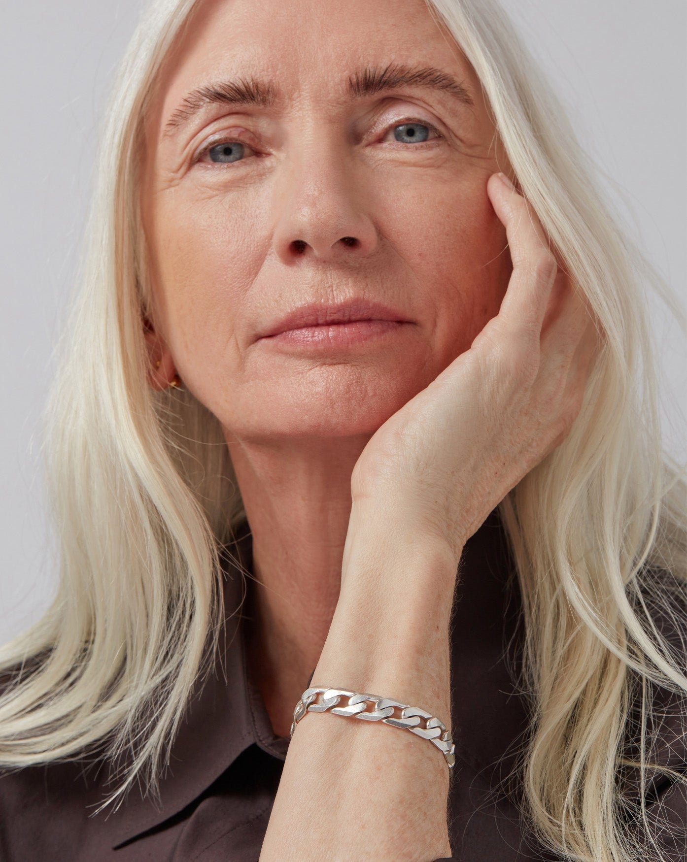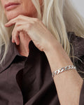 Equal parts feminine and masculine, the Walter Bracelet boasts flat, curb chain links that sit comfortably on skin. This top rated piece will finish any outfit with ease. Wear Walter on its own or mix with more structured bangles and personal pieces. Finished in antique silver.