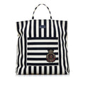 Product Details: White Gucci Striped Canvas Tote Bag. This tote bag features a canvas body, flat canvas handles, an open top, an exterior front zip pocket, and interior zip and slip pockets. 16.5" L x 15.4" W x 4.7" D, 4.7" drop. Serial number 374264 486628.