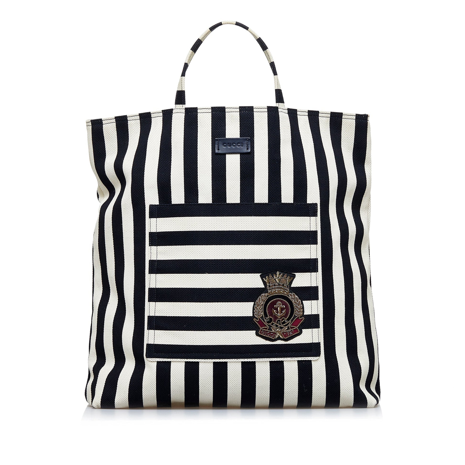 Please note this is a item that may display signs of wear consistent with the condition listed above and shown in photos. Designer Revival this is an White Gucci Striped Canvas Tote Bag or . Learn more about our ation process.