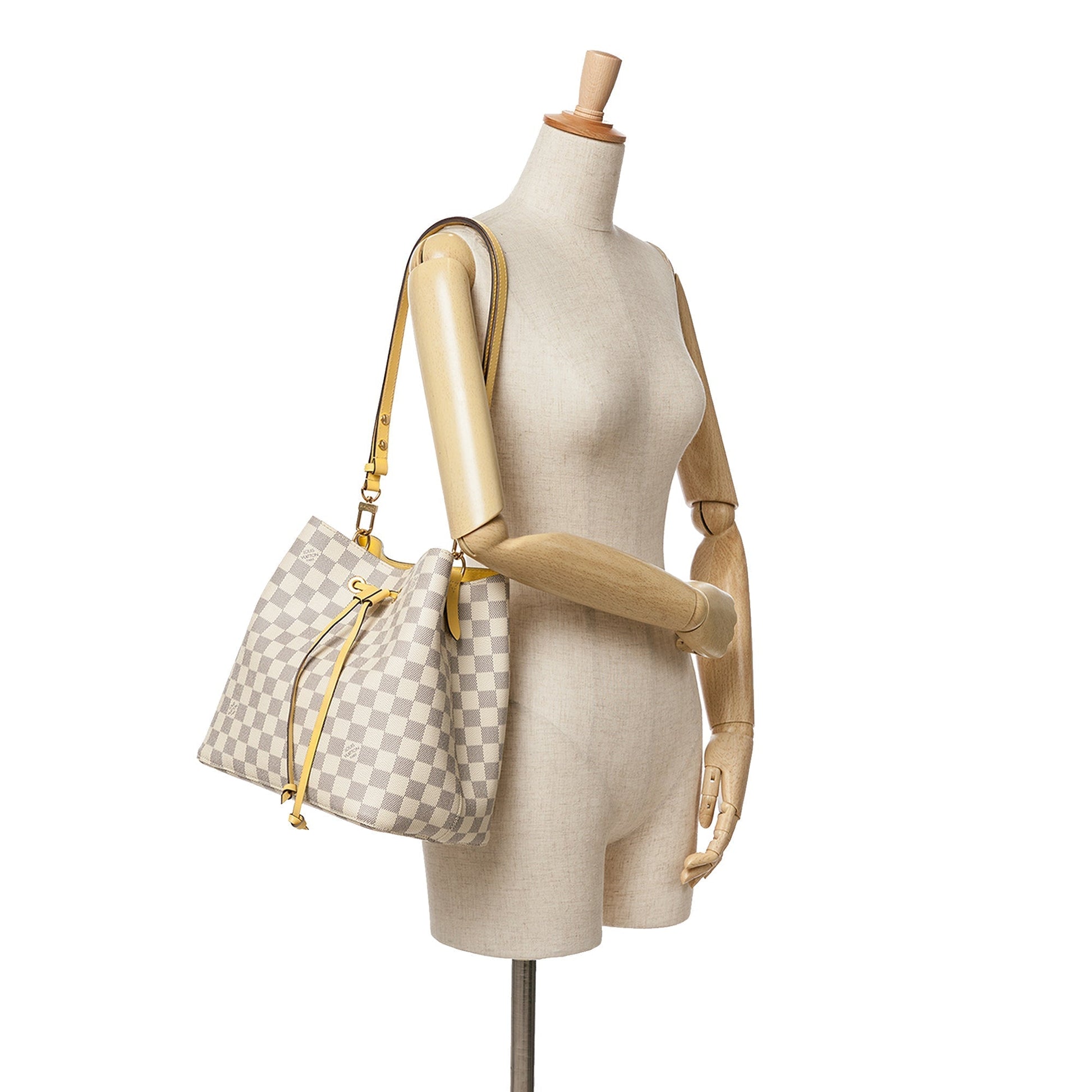 White Louis Vuitton Damier Azur Neonoe MM Bucket Bag
