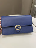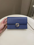 Gucci GG Crossbody Clutch on Chain Blue Grained Leather