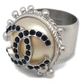 Chanel Ring Rhinestone Artificial Pearl Silver 02C #54 #14