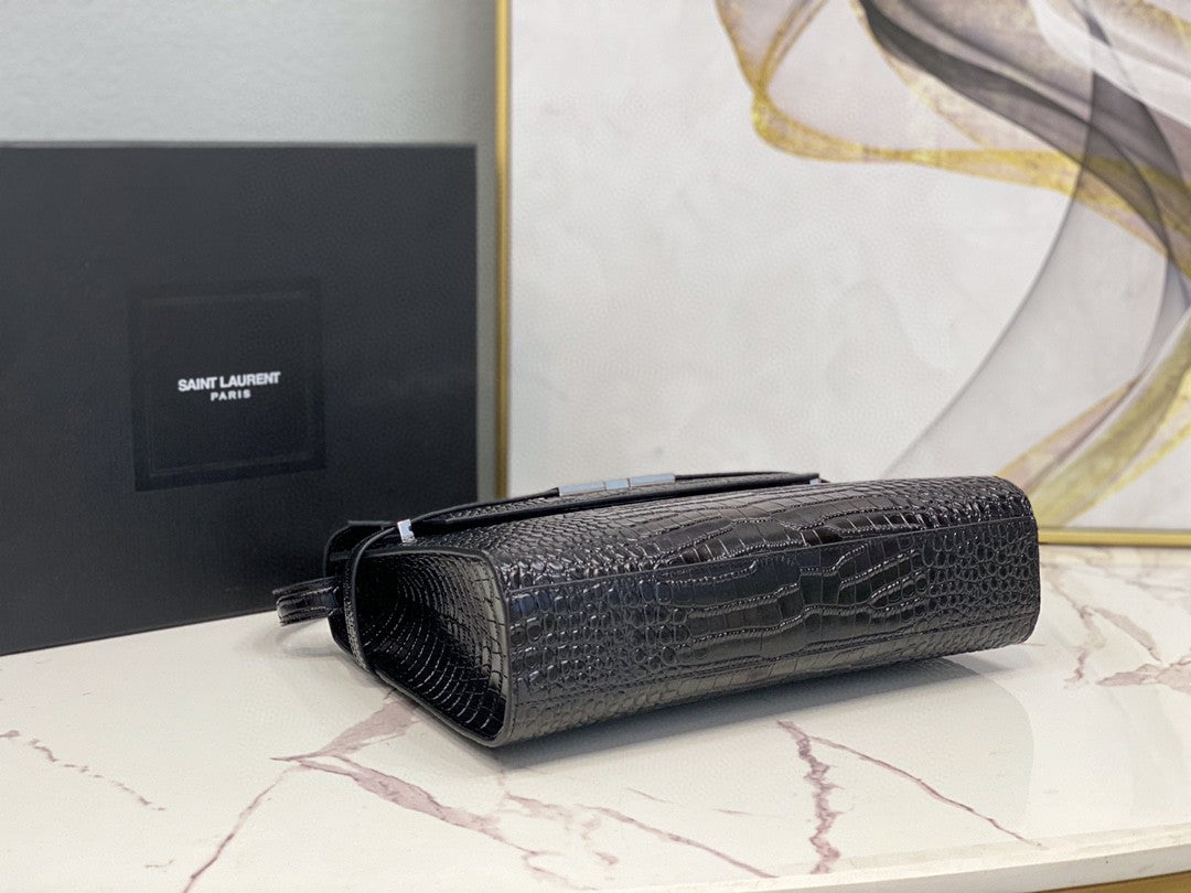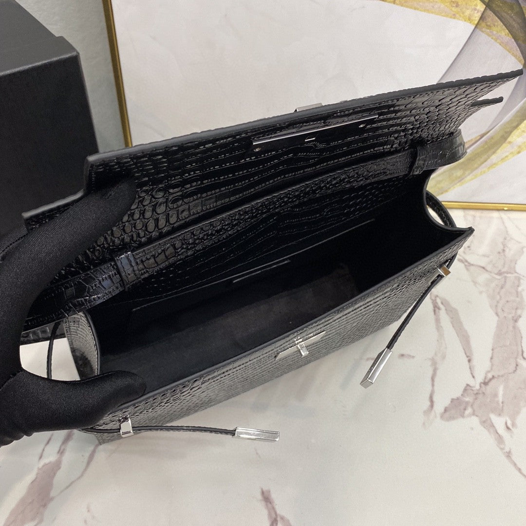 YSSL Manhattan Shoulder Bag In-Shiny Black For Womtlm 11.4in/29cm YSL 579271DND0J1000