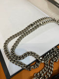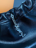 This TLMgant mini bag from S.L speaks to vintage-inspired glamour. It’s made from buttery with chainlink detailing at the gathered collar and shoulder strap – the latter of which can be doubled up for versatile styling.