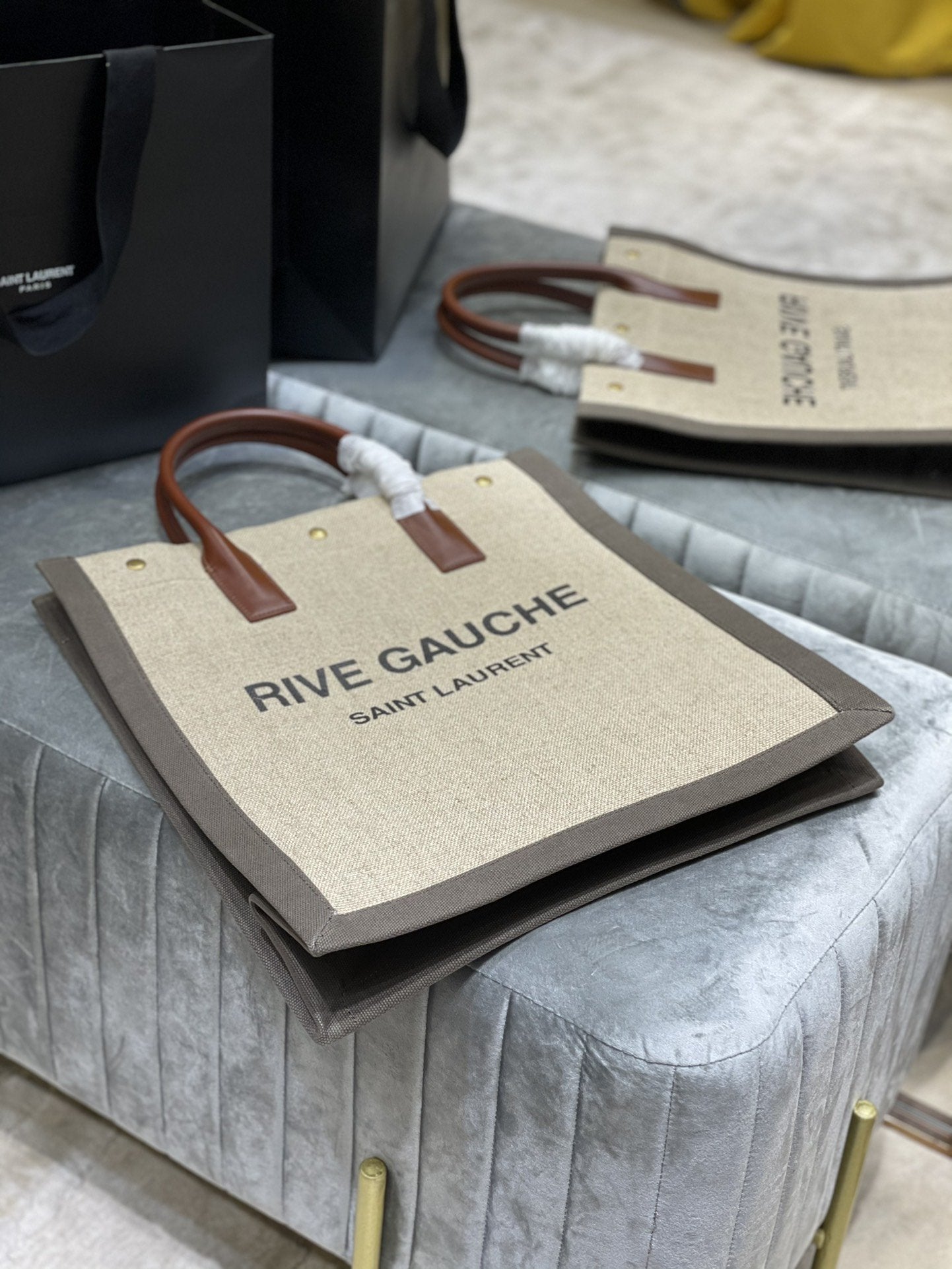 S.L Rive Gauche North/South Tote Bag In Printed Lintlm For Womtlm 15.3in/39cm YSL 632539FAABR9083
